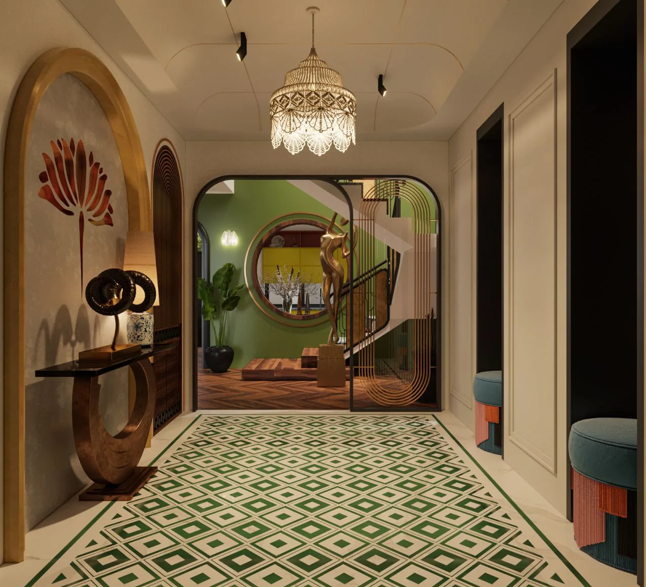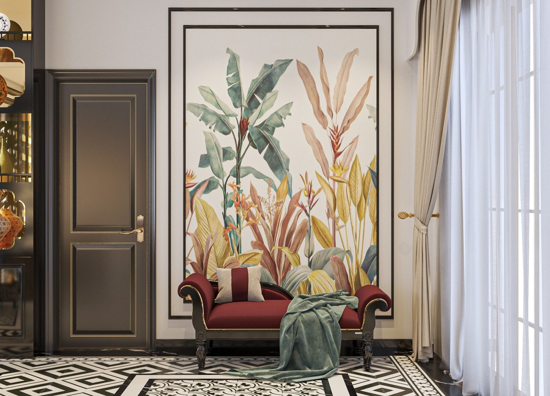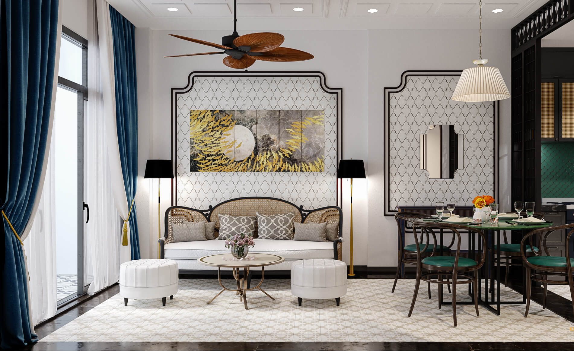 ✅ Thiết kế tinh tế, đậm chất Indochine – Họa tiết hoa văn truyền thống kết hợp với đường nét hiện đại, tạo nên không gian hài hòa.