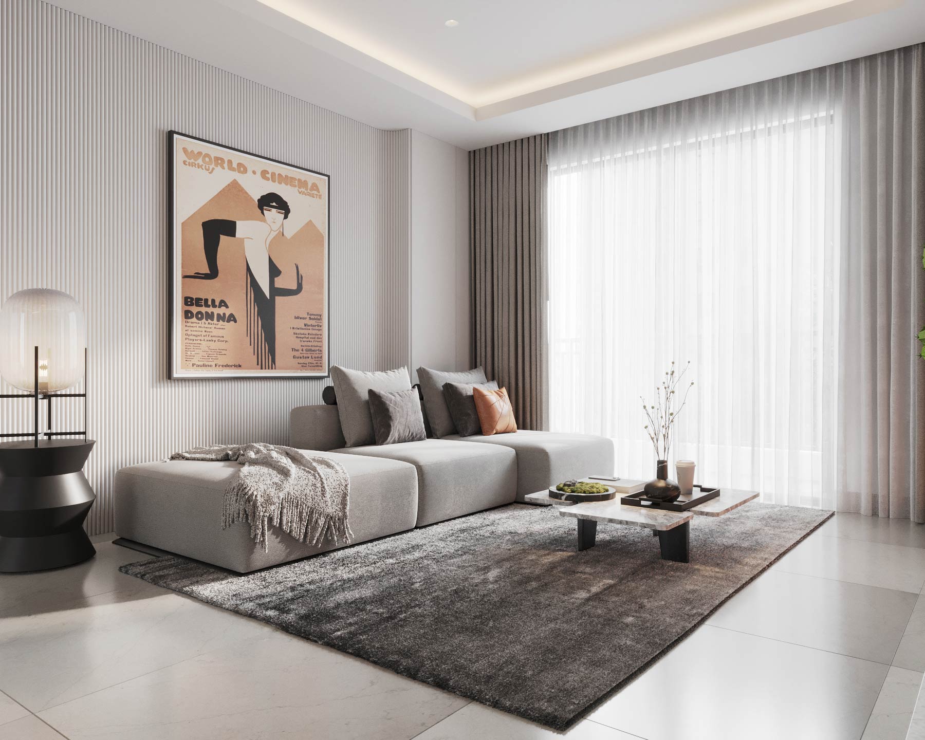 Phòng khách là nơi nghỉ ngơi, tiếp khách và tạo ấn tượng đầu tiên cho toàn bộ căn hộ. Khu vực này cần được bố trí thông thoáng, hạn chế chi tiết rườm rà nhưng vẫn có điểm nhấn để tạo cảm giác ấm cúng.