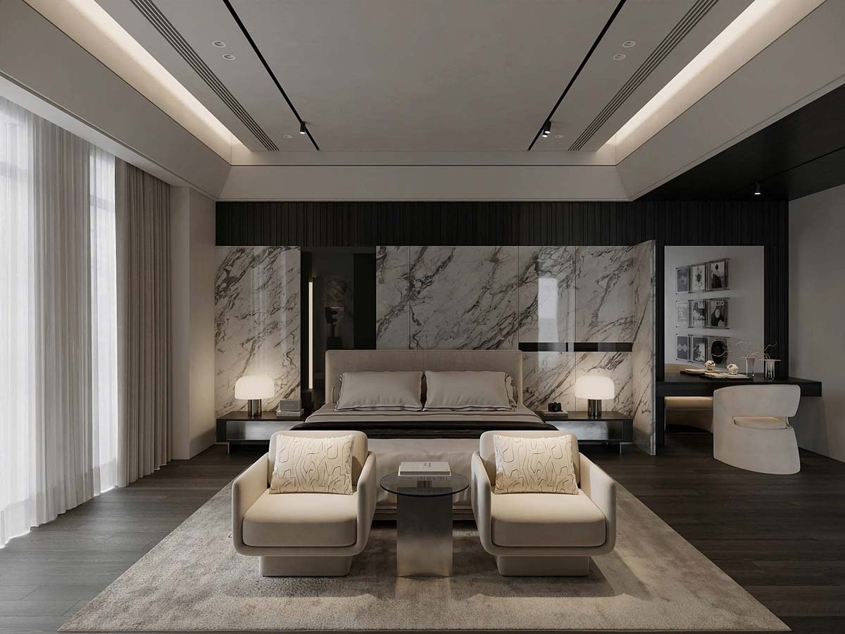 Mỗi phòng ngủ trong biệt thự được BLUEWOOD thiết kế như một “resort thu nhỏ”, nơi gia chủ hoàn toàn thư giãn và tái tạo năng lượng sau một ngày dài.