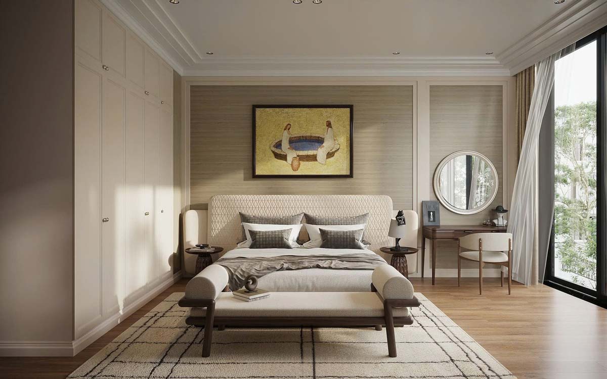 Từng chi tiết trong phòng ngủ đều được tính toán để mang lại cảm giác dễ chịu, ấm áp và thư thái lâu dài.