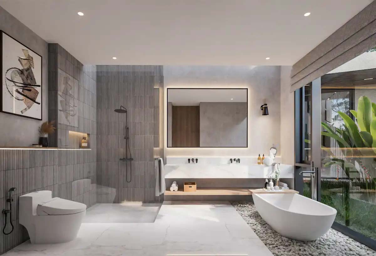 Phòng tắm biệt thự không chỉ đáp ứng nhu cầu sinh hoạt, mà còn là không gian chăm sóc và thư giãn cá nhân.