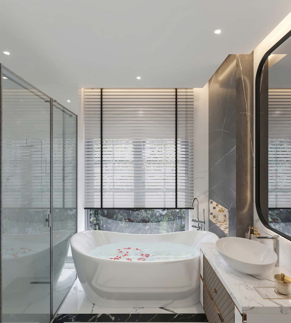 Mỗi phòng tắm mang lại trải nghiệm như một spa riêng tại gia, nhẹ nhàng và tinh tế.