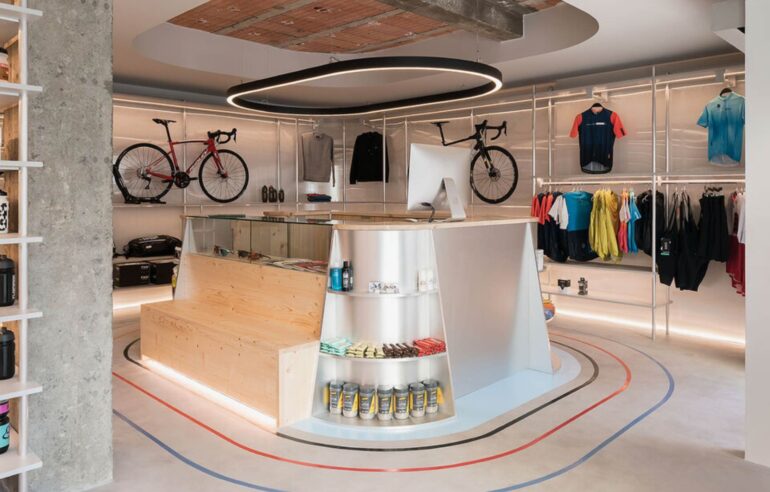 BLUEWOOD tận dụng hệ tủ tường theo chiều cao, kết hợp module trưng bày linh hoạt ở trung tâm. Lối đi được giữ thông thoáng, phân khu sản phẩm rõ ràng, giúp khách hàng dễ quan sát toàn bộ cửa hàng và nhanh chóng tìm được sản phẩm mong muốn mà không bị rối mắt.