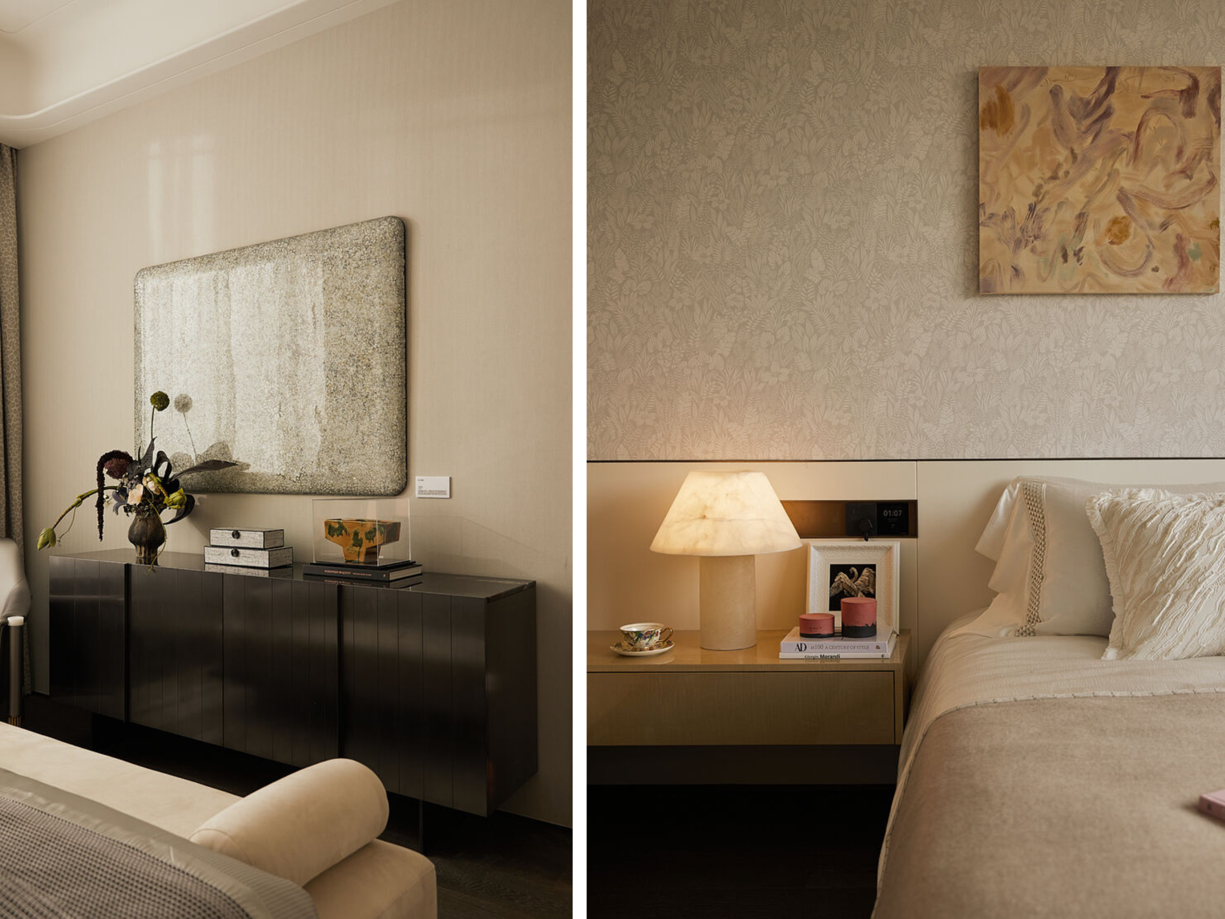 Ánh sáng và vật liệu được xử lý ở mức dịu nhẹ, tạo nên một môi trường nghỉ ngơi lý tưởng, nơi gia chủ có thể tái tạo năng lượng sau một ngày dài.