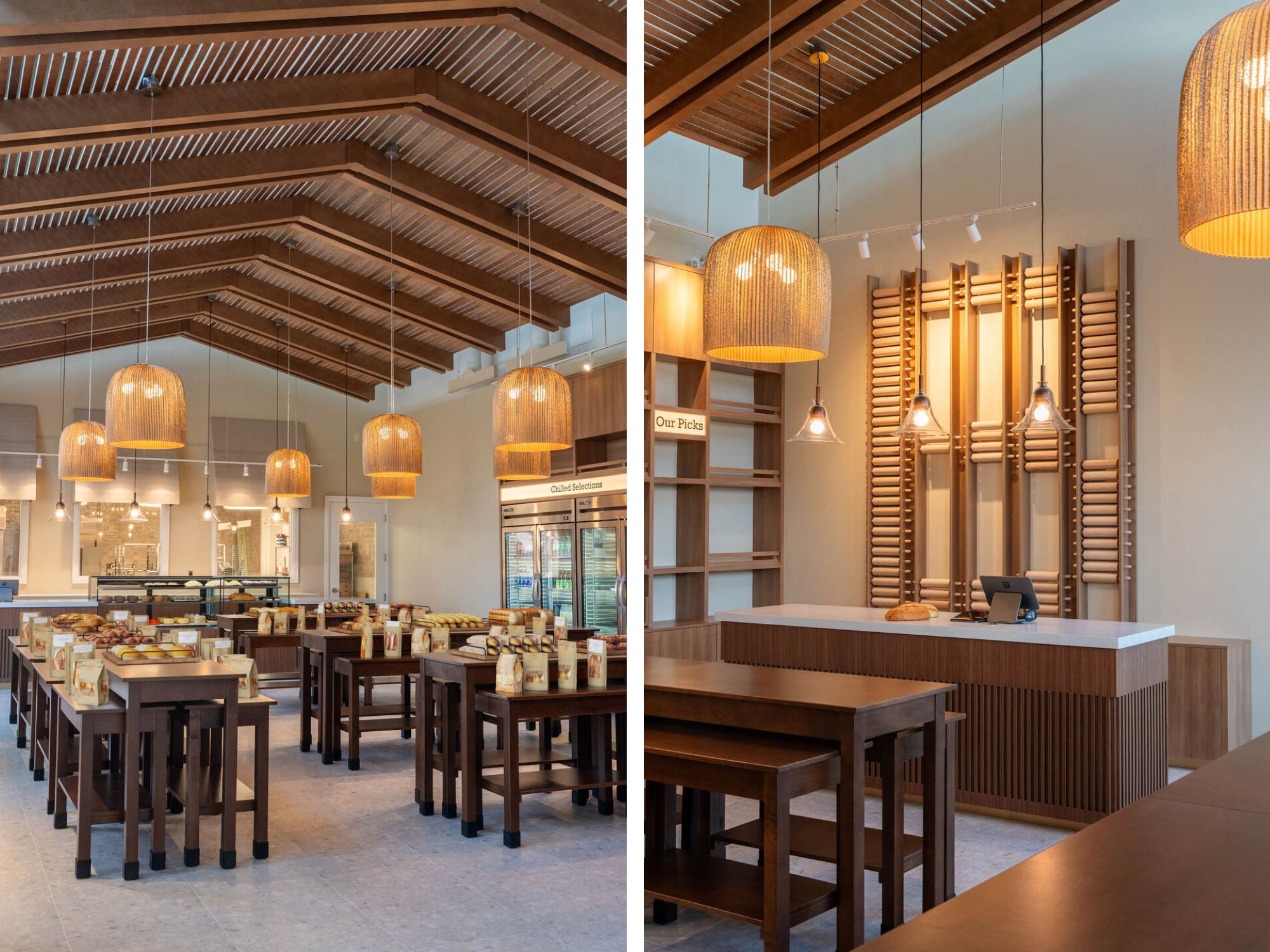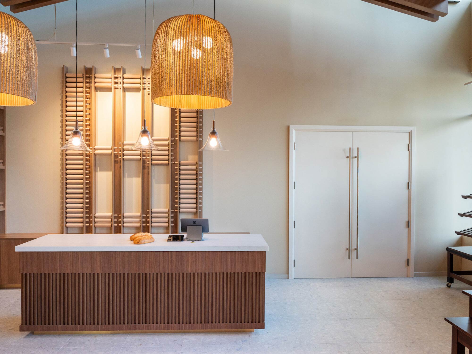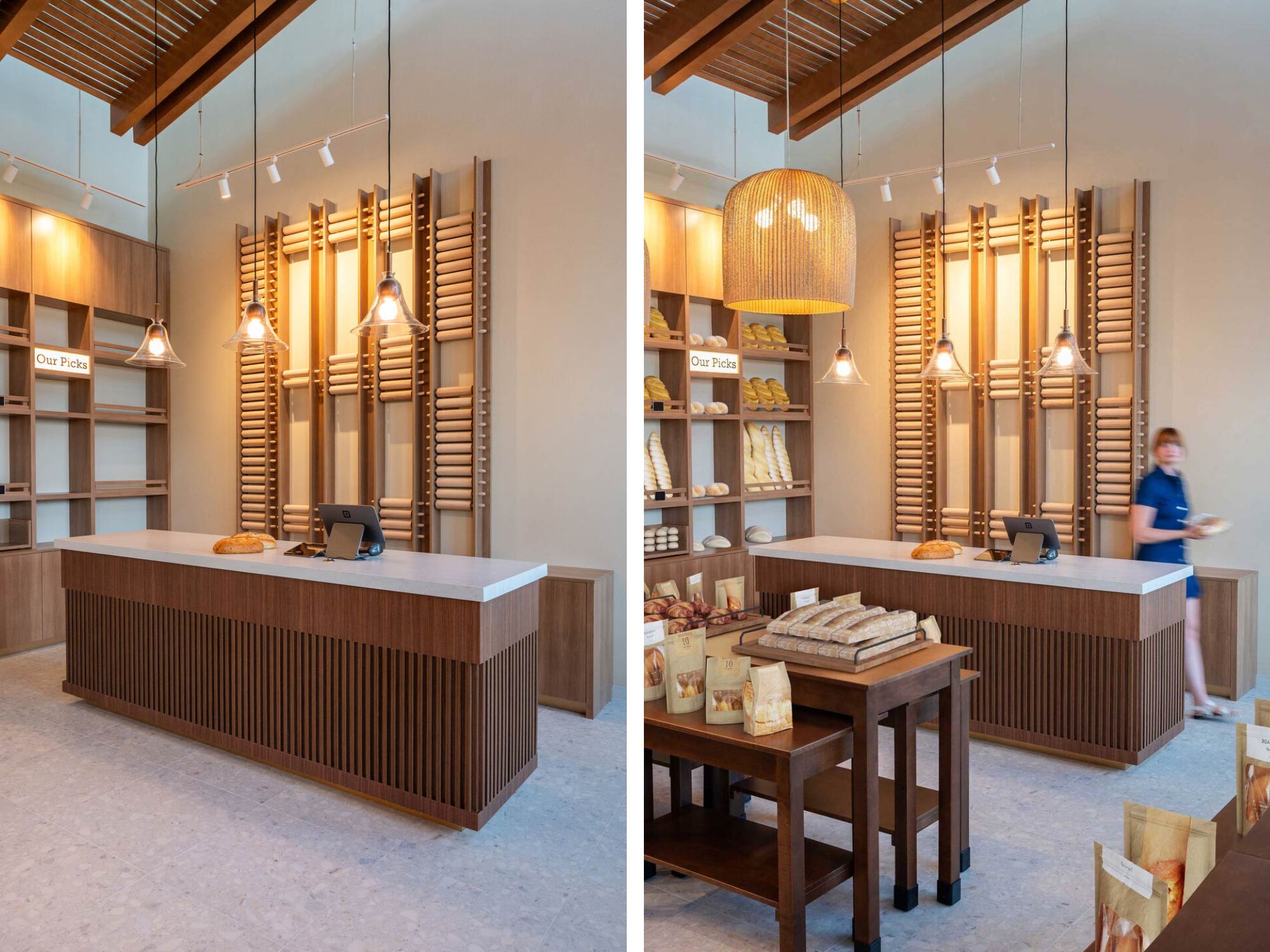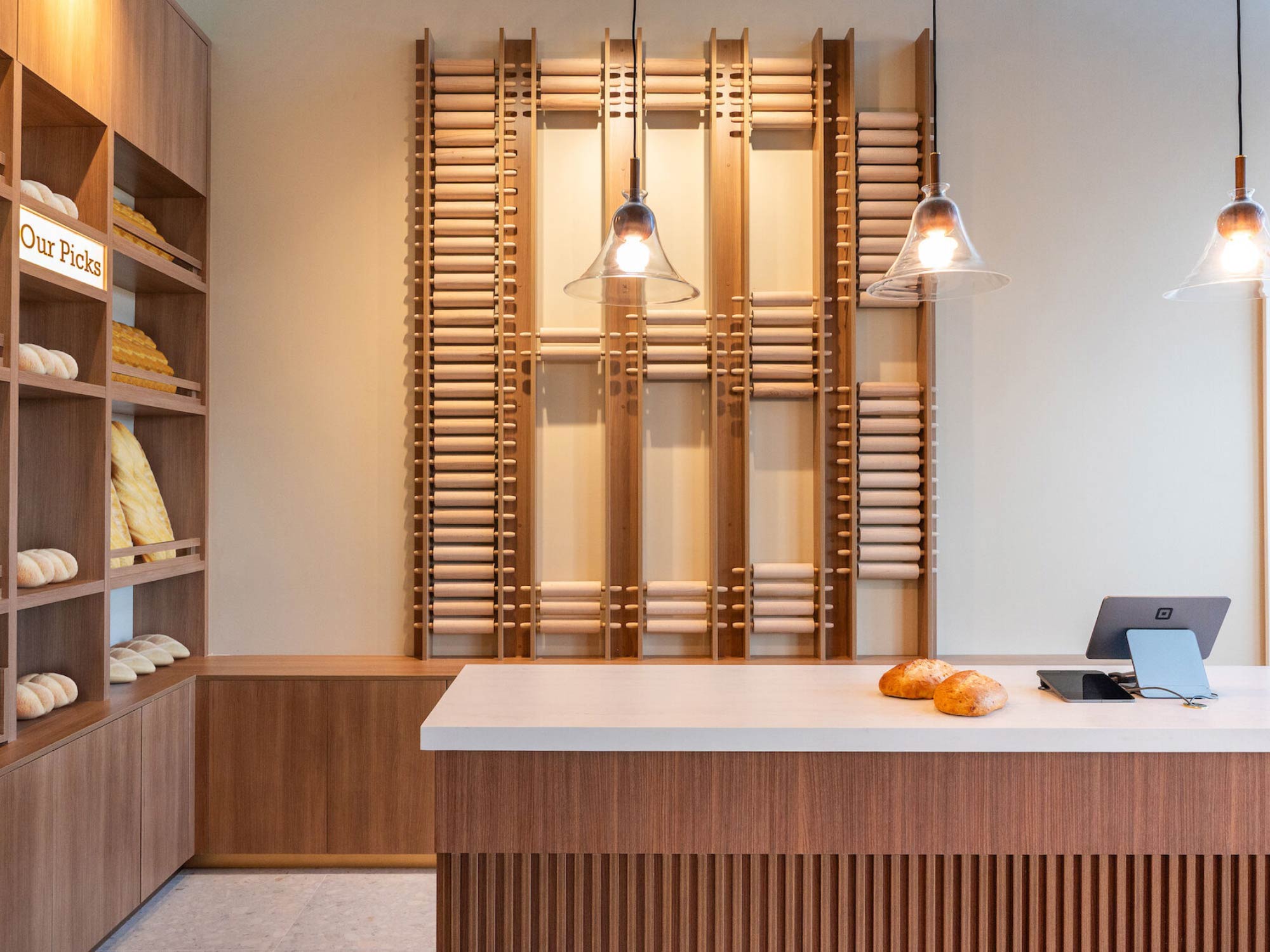 Trong dự án Breadsource Cafe, BLUEWOOD định hình không gian theo hướng tối giản nhưng giàu cảm xúc, nơi khách hàng không chỉ đến để mua sản phẩm mà còn để trải nghiệm một bầu không khí ấm áp và gần gũi. Toàn bộ concept được xây dựng xoay quanh chất liệu gỗ – vừa là yếu tố thẩm mỹ chủ đạo, vừa là công cụ dẫn dắt cảm xúc. Không gian được tiết chế về màu sắc, hạn chế chi tiết rườm rà, nhằm làm nổi bật sản phẩm bánh và tạo nên một hành trình mua sắm tự nhiên, nhẹ nhàng.