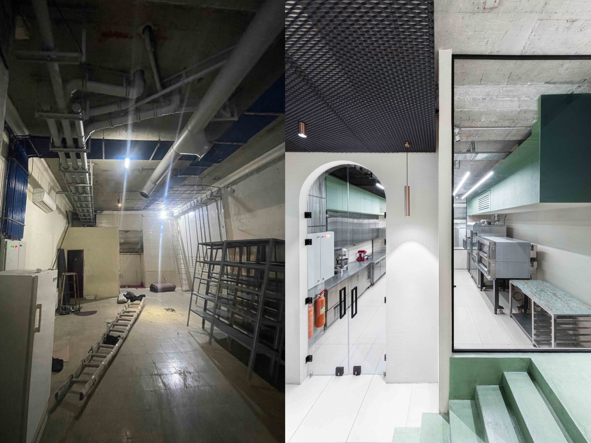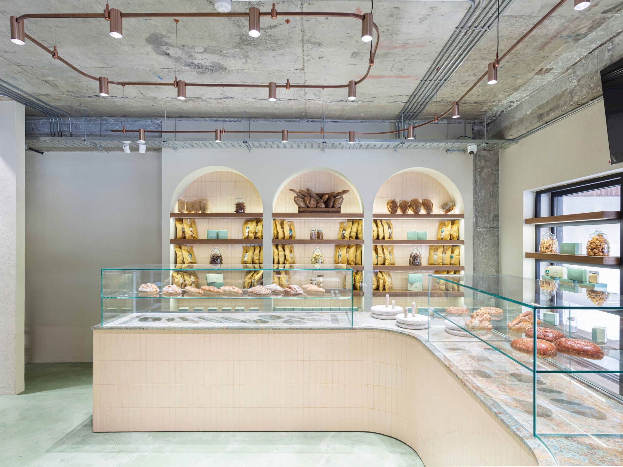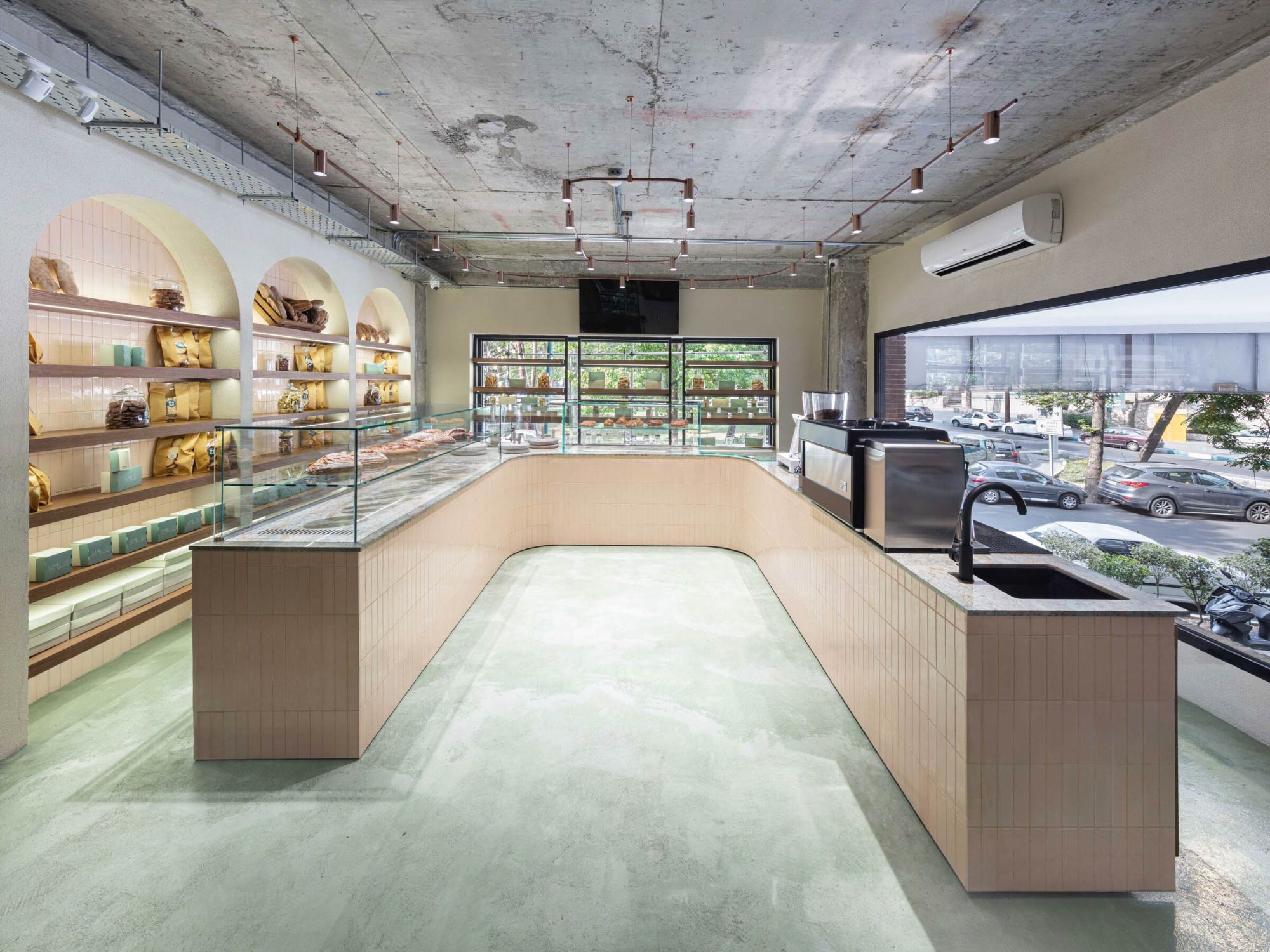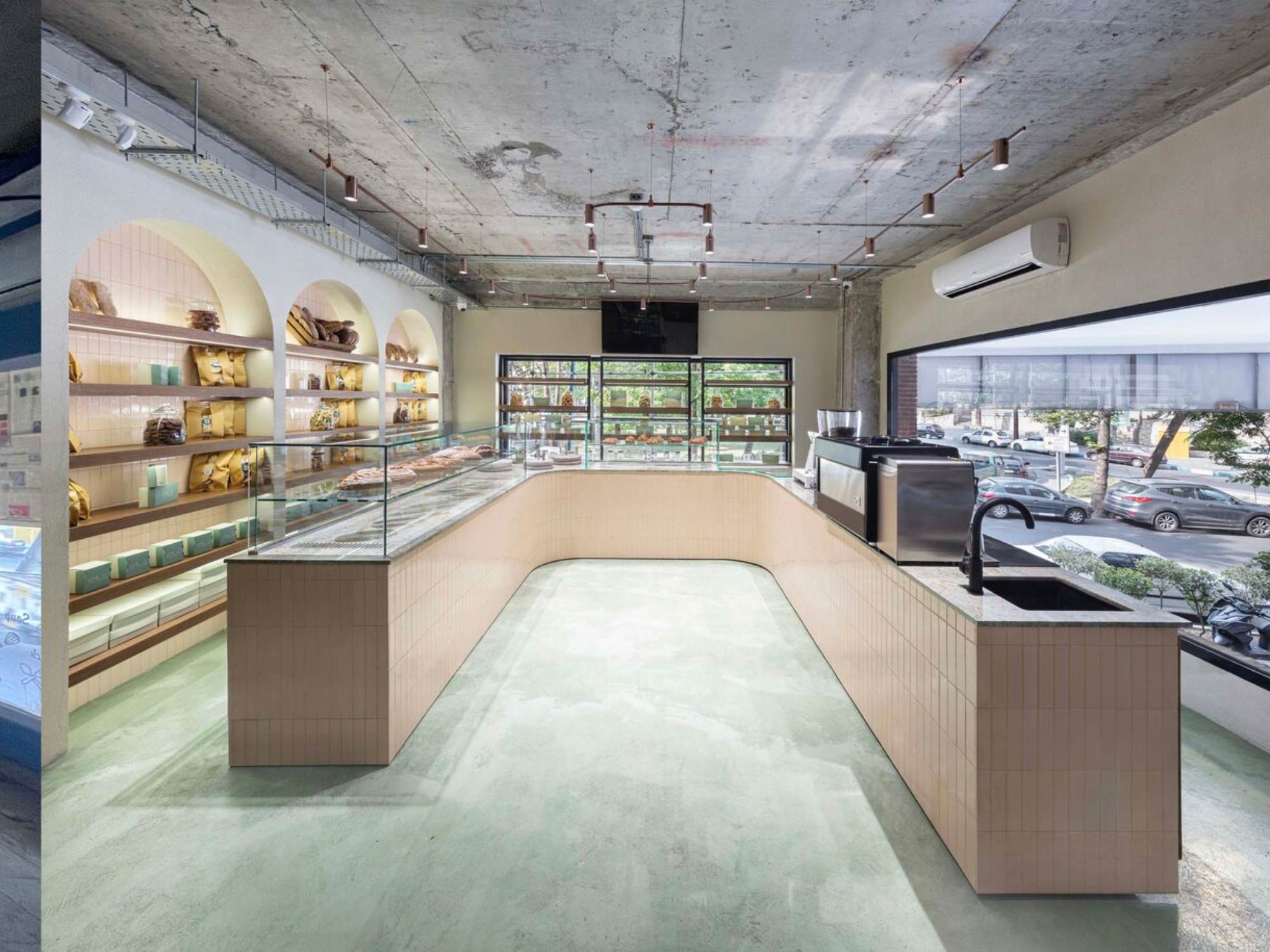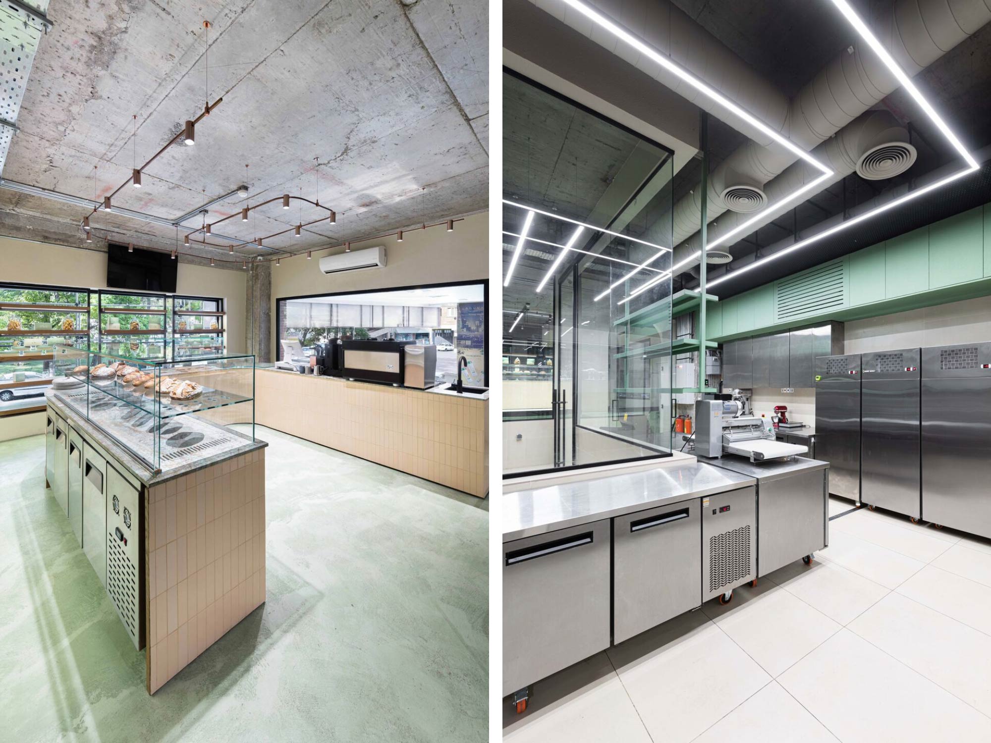 Một trong những điểm đáng chú ý của Dastaas nằm ở cách phân tách không gian giữa khu vực phục vụ và khu sản xuất. Thay vì tách biệt hoàn toàn, công trình sử dụng lớp kính trong suốt như một “màng lọc”, cho phép khách hàng quan sát trực tiếp quy trình làm bánh. Điều này không chỉ tăng tính minh bạch mà còn tạo ra một trải nghiệm mang tính trình diễn. Tuy nhiên, để đạt được hiệu quả này, thi công phải đảm bảo đồng thời nhiều yếu tố kỹ thuật như độ kín, khả năng cách nhiệt, kiểm soát mùi và tiếng ồn. Đây là minh chứng rõ ràng cho việc một chi tiết thiết kế tưởng chừng đơn giản lại đòi hỏi năng lực thi công ở mức cao.