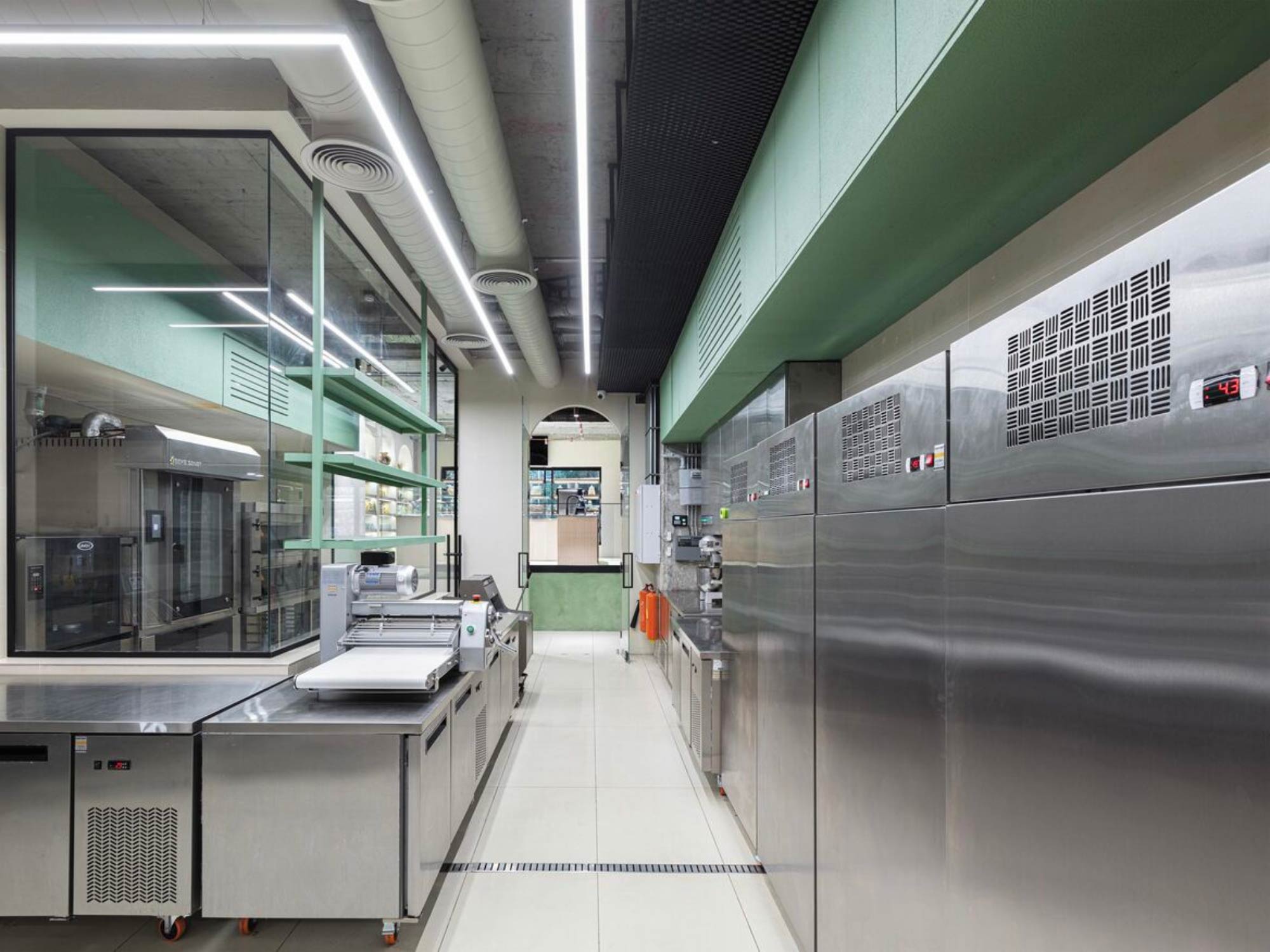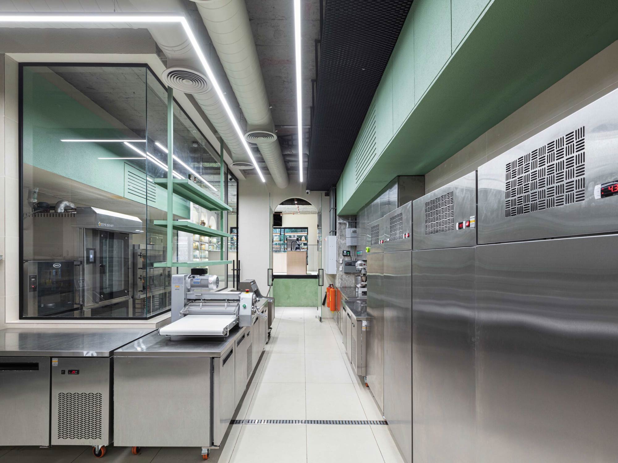 Ẩn sau vẻ ngoài chỉn chu của Dastaas là một hệ thống kỹ thuật phức tạp đặc thù của mô hình bakery. Các yêu cầu về thông gió, hút mùi, cách nhiệt và cấp điện cho thiết bị công suất lớn đều được tích hợp một cách kín đáo. Đây là những yếu tố ít được nhìn thấy nhưng lại quyết định trực tiếp đến khả năng vận hành lâu dài của công trình. Việc xử lý tốt các hệ thống này không chỉ đảm bảo hiệu suất mà còn duy trì chất lượng trải nghiệm cho khách hàng trong suốt quá trình sử dụng.