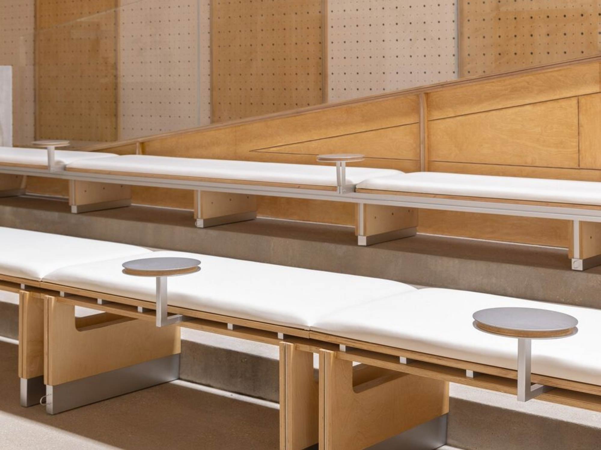 Healing Pets đặc biệt chú trọng đến các chi tiết nhỏ nhằm nâng cao trải nghiệm cho thú cưng. Các khu vực ngồi được thiết kế với khoảng trống bên dưới, tạo nơi trú ẩn an toàn cho những con vật lần đầu đến không gian mới.