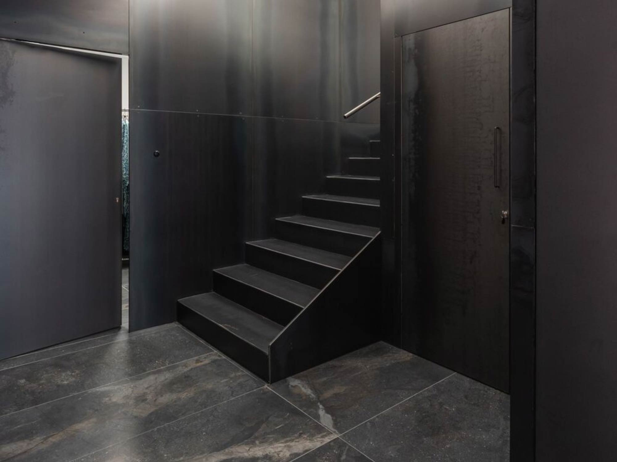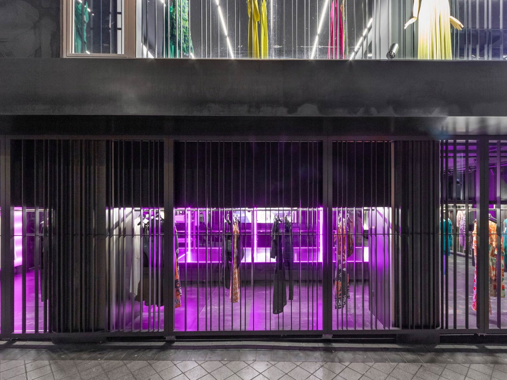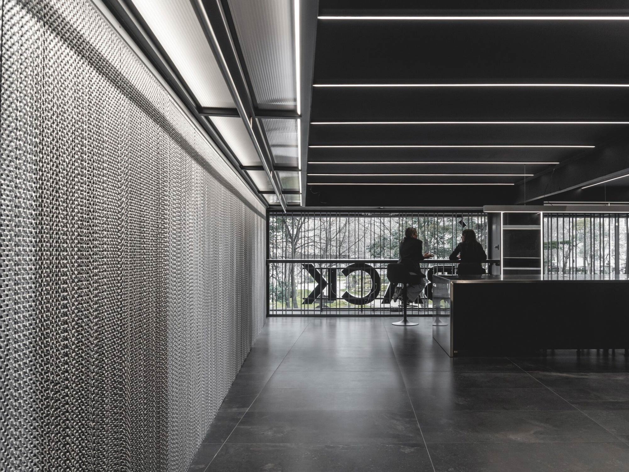 Thiết kế mặt tiền đóng vai trò như một lớp chuyển tiếp giữa không gian bên trong và môi trường bên ngoài. Hệ lam kim loại không chỉ tạo nên nhận diện kiến trúc đặc trưng mà còn giúp kiểm soát ánh sáng và tầm nhìn. Từ góc nhìn đô thị, cửa hàng hiện lên như một khối kiến trúc có chiều sâu, vừa thu hút vừa giữ được sự bí ẩn. Khi tiến gần, lớp vỏ này dần mở ra, cho phép người dùng khám phá không gian bên trong theo từng bước, tạo nên một trải nghiệm tiếp cận mang tính dẫn dắt.