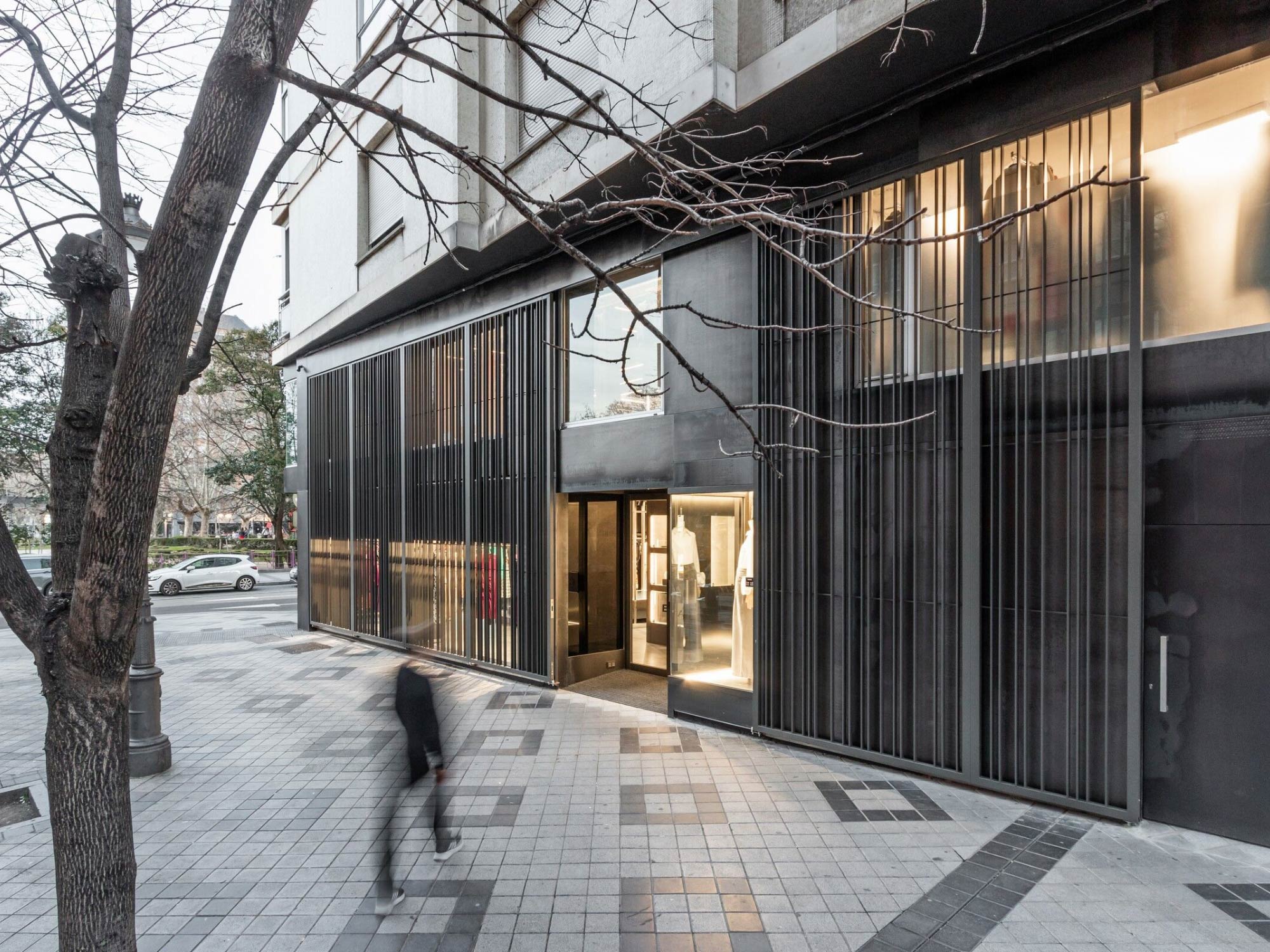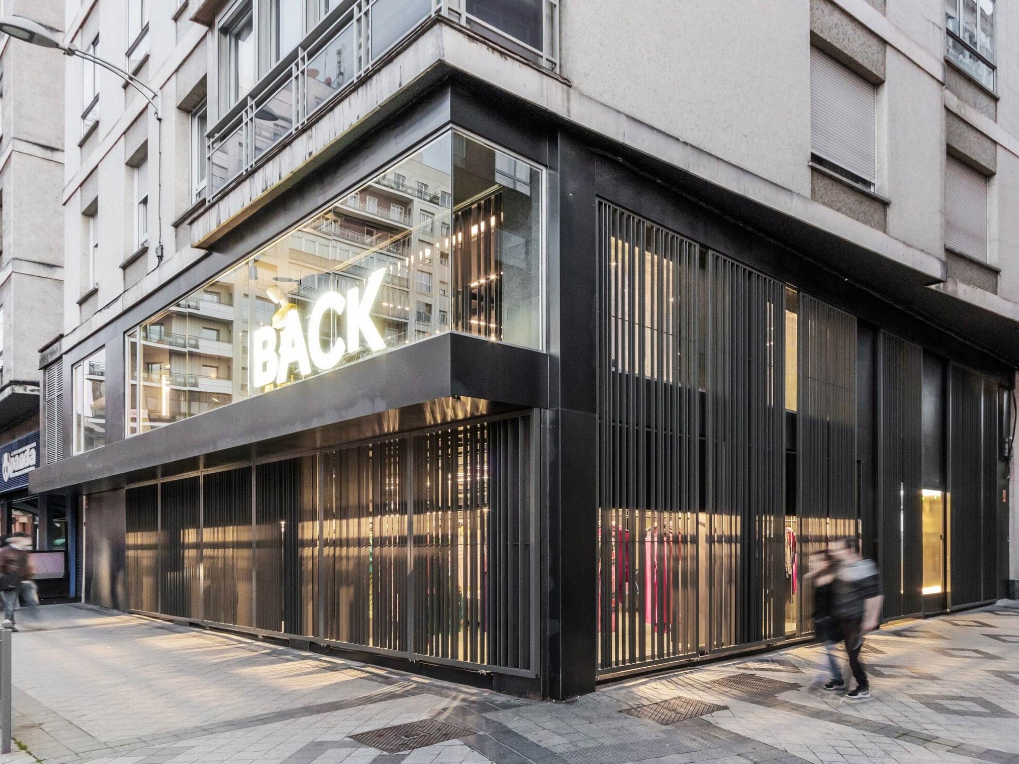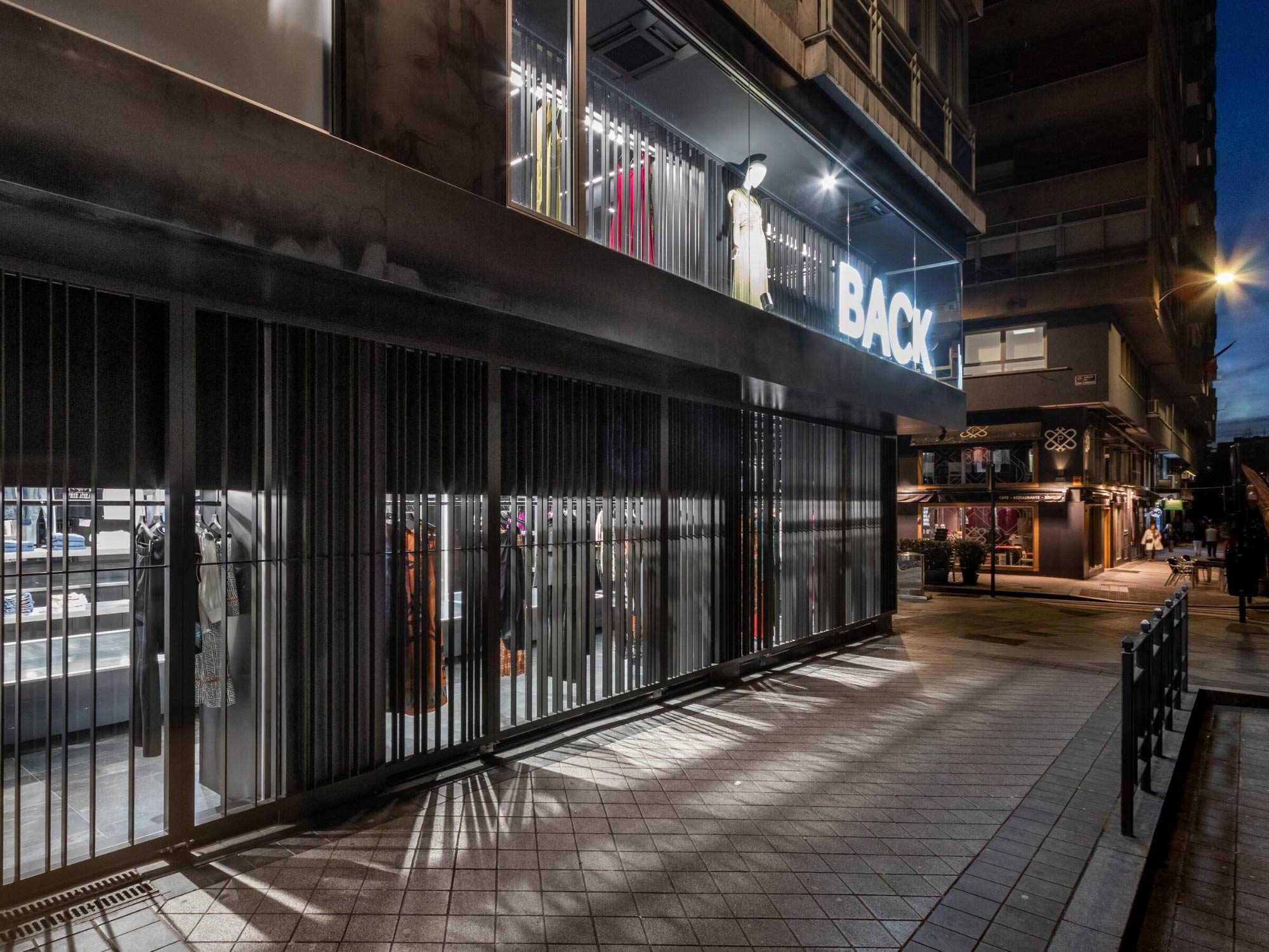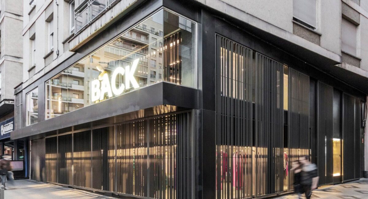 Shop thời trang Back Poniente được đặt trong một bối cảnh đô thị đặc biệt, nơi không gian thương mại tiếp giáp trực tiếp với quảng trường và công viên mở. Với hai mặt tiền kính lớn, công trình sở hữu điều kiện ánh sáng tự nhiên dồi dào và khả năng kết nối mạnh mẽ với môi trường xung quanh. Tuy nhiên, thay vì khai thác triệt để sự phô bày, BLUEWOOD lựa chọn một hướng tiếp cận có kiểm soát, nhằm điều tiết tầm nhìn và cảm xúc của người dùng. Thiết kế vì thế không đơn thuần là mở rộng không gian mà tập trung vào việc tạo ra các lớp trải nghiệm có chiều sâu, cân bằng giữa tính công cộng và sự riêng tư cần thiết trong môi trường bán lẻ thời trang.