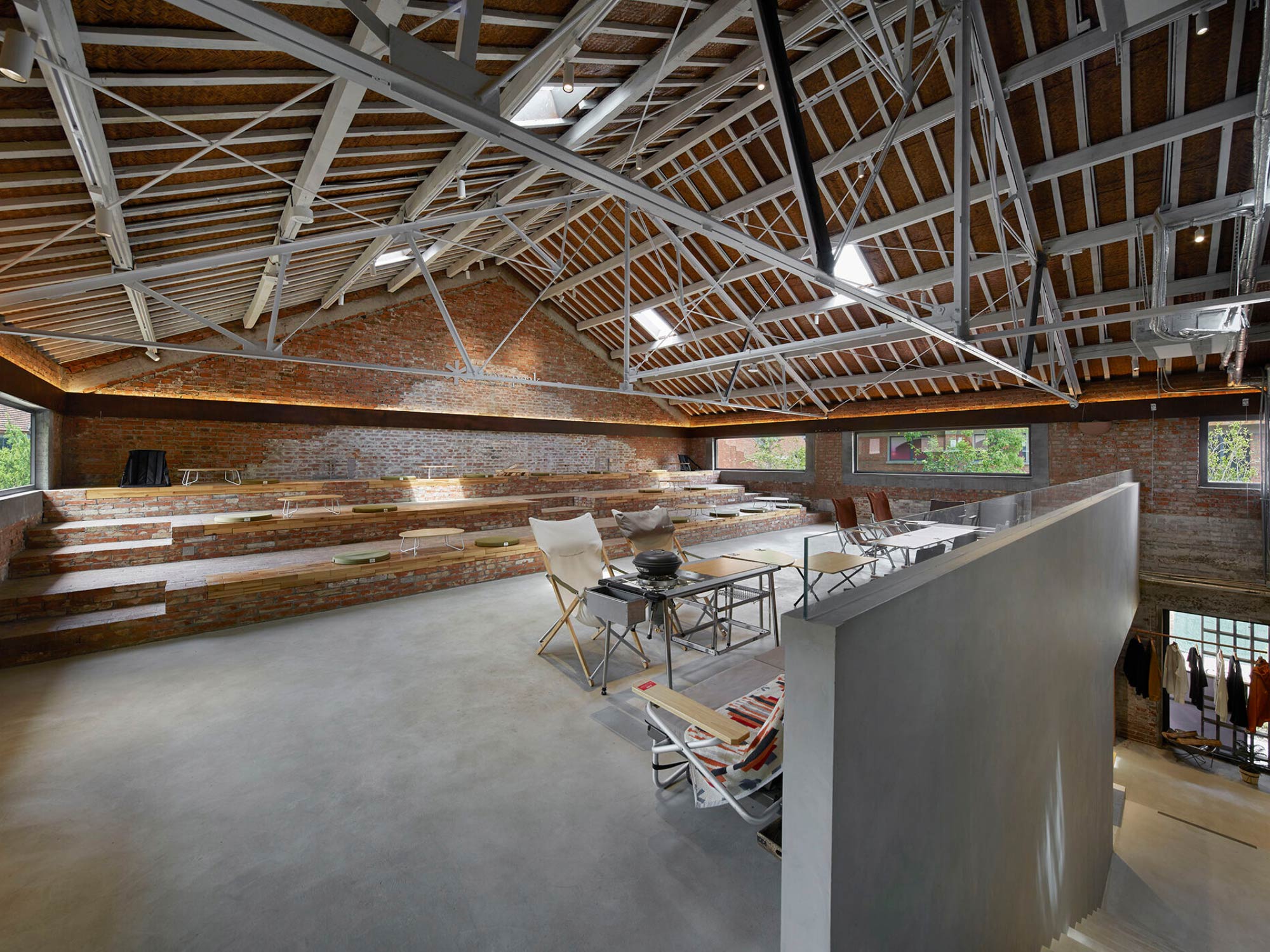 Ánh sáng trong Snow Peak Cafe được xử lý theo hướng tiết chế nhưng hiệu quả: