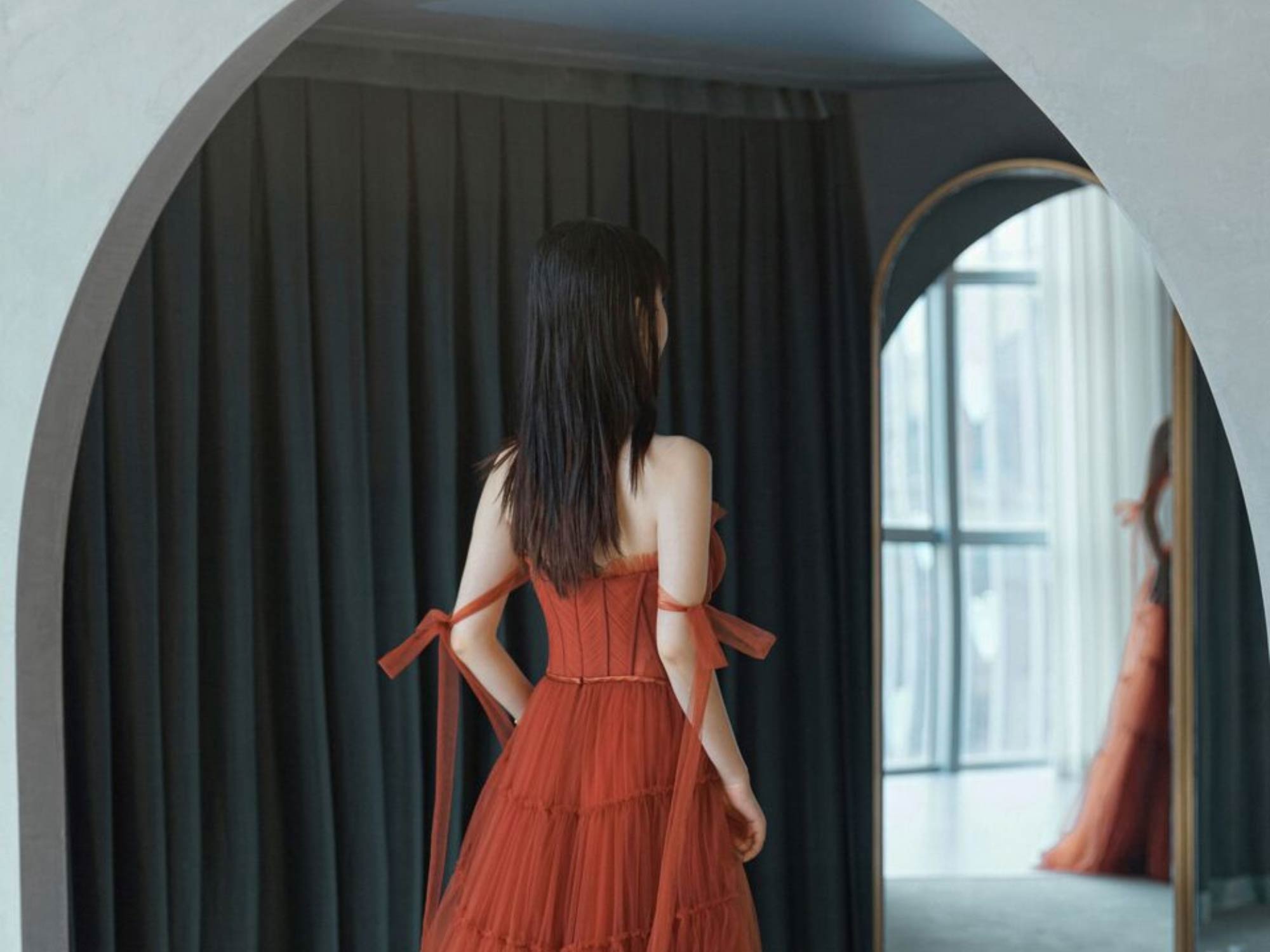 Một trong những yếu tố quan trọng của showroom cưới là trải nghiệm cá nhân hóa, và dự án studio áo cưới Lafine de Paris đã xử lý điều này một cách tinh tế. Khu vực thử đồ được thiết kế như một không gian riêng biệt, với ánh sáng dịu và bố trí kín đáo, giúp khách hàng cảm thấy thoải mái và tự tin.