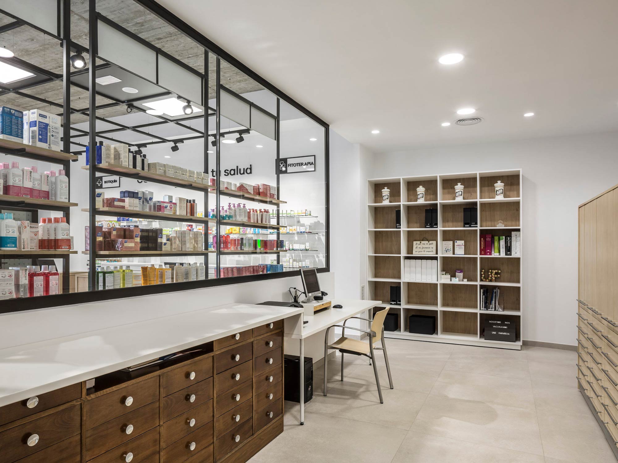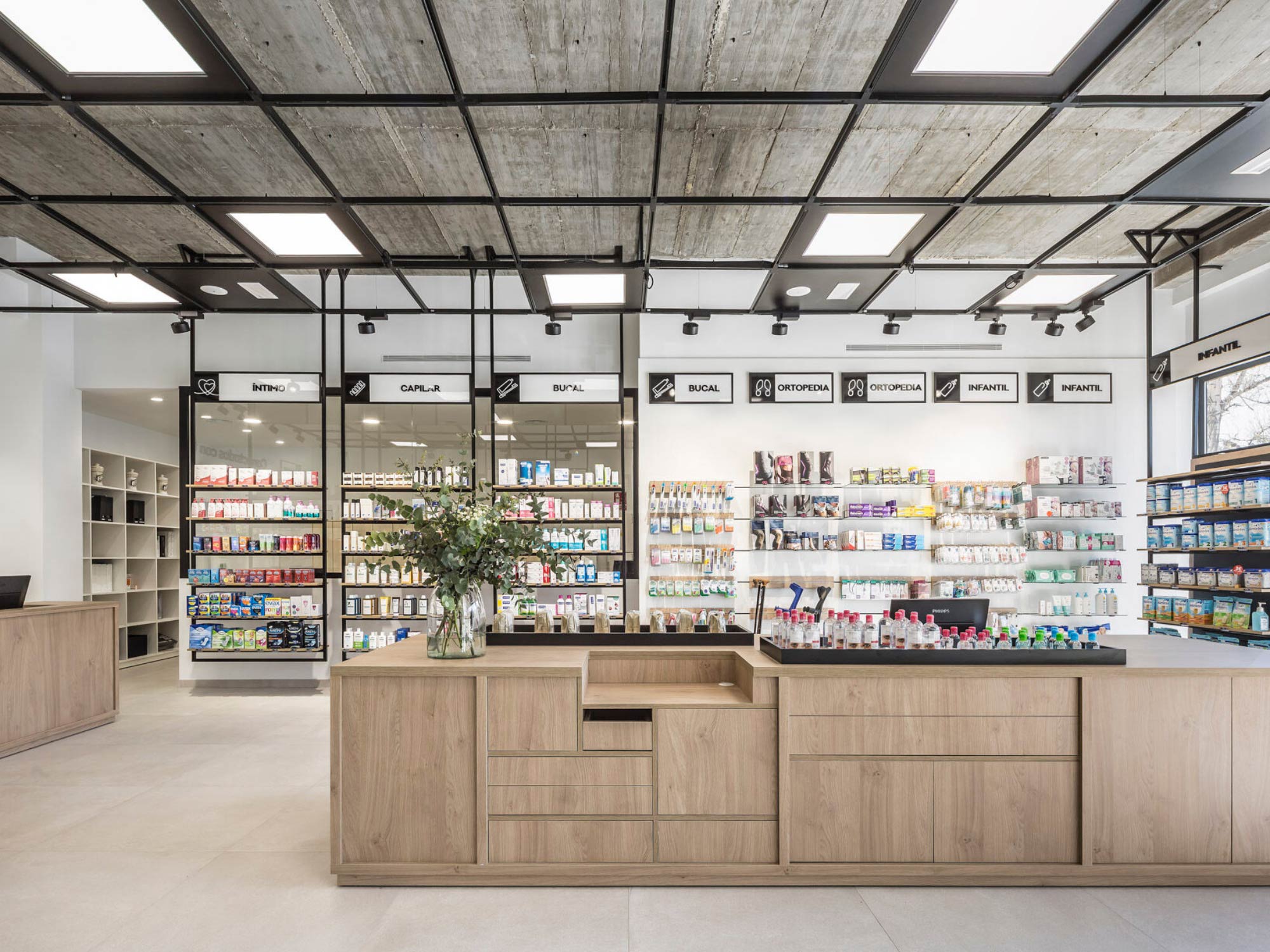 BLUEWOOD đánh giá đây là hướng thiết kế rất phù hợp với xu hướng bán lẻ hiện nay: lấy cảm xúc người dùng làm trung tâm. Thay vì tạo cảm giác lạnh lẽo như những quầy thuốc truyền thống, không gian được xử lý mềm mại hơn bằng vật liệu gỗ, ánh sáng dịu và cách bố trí mở, giúp khách hàng cảm thấy dễ tiếp cận, thoải mái hơn khi tìm hiểu sản phẩm.