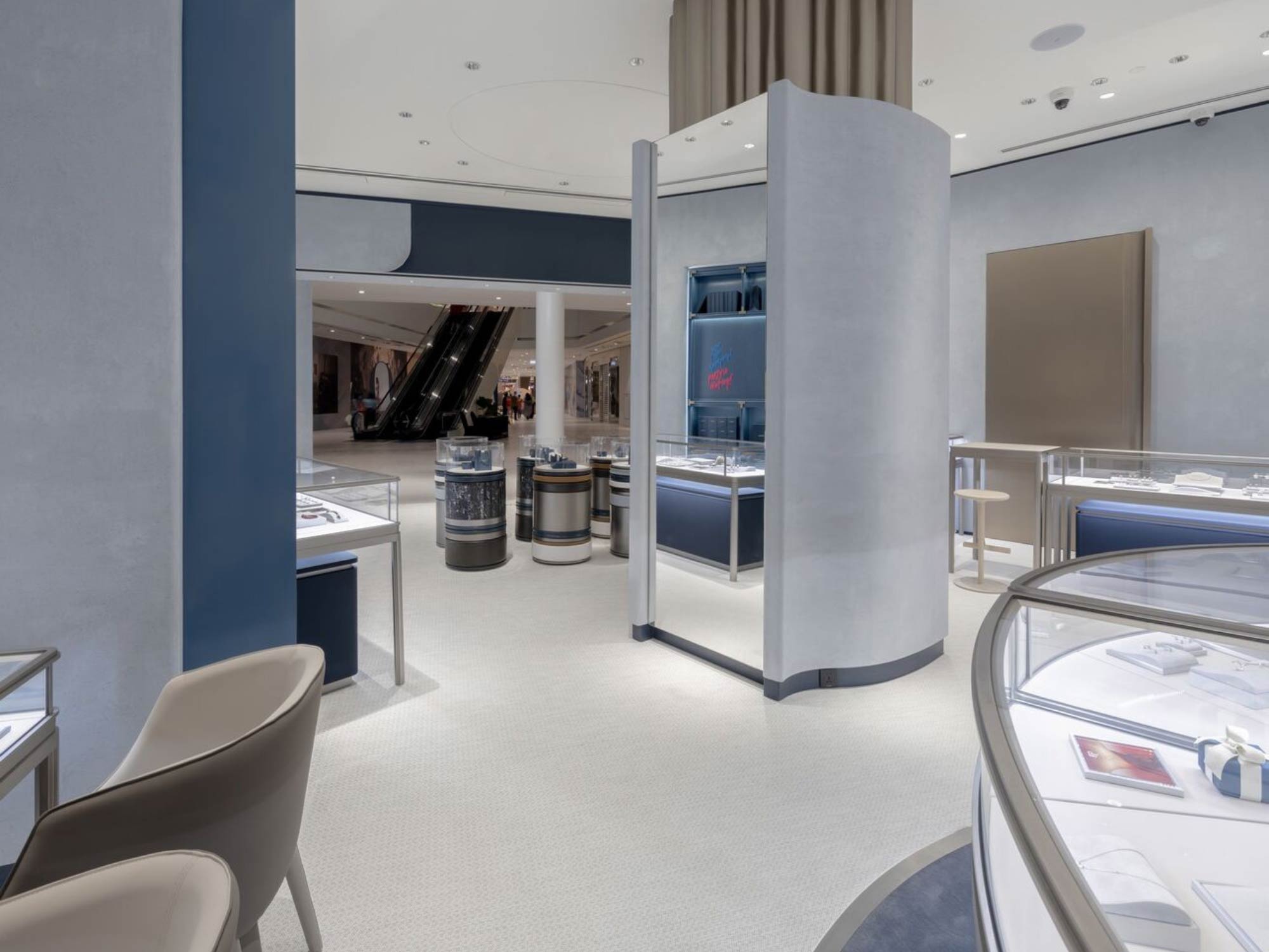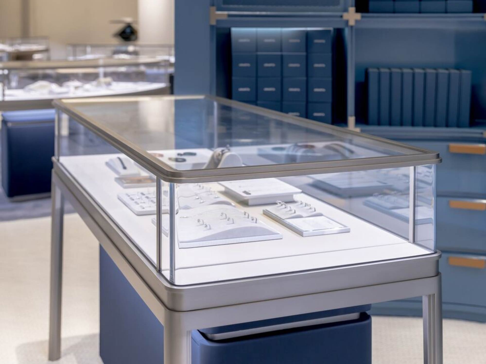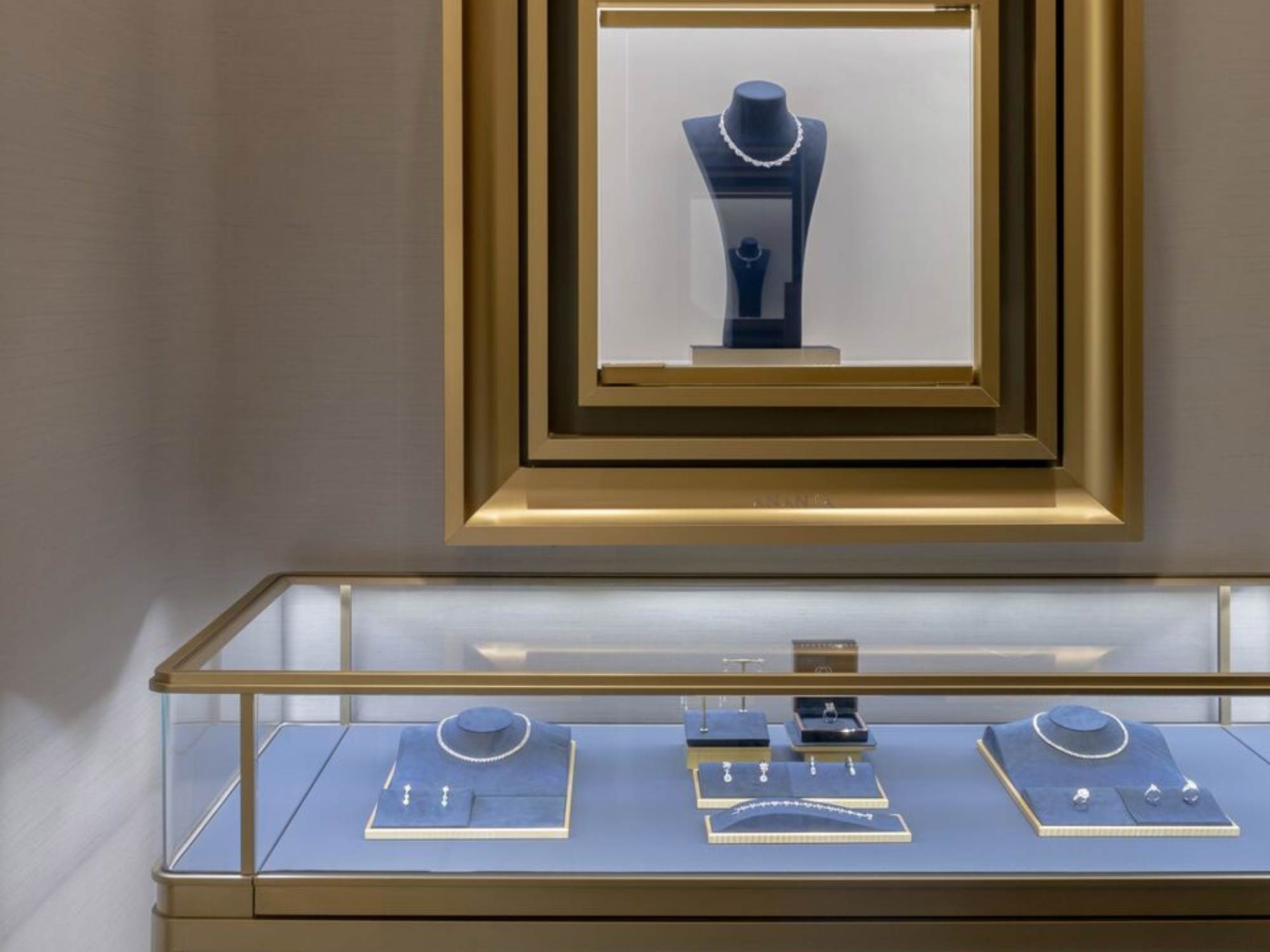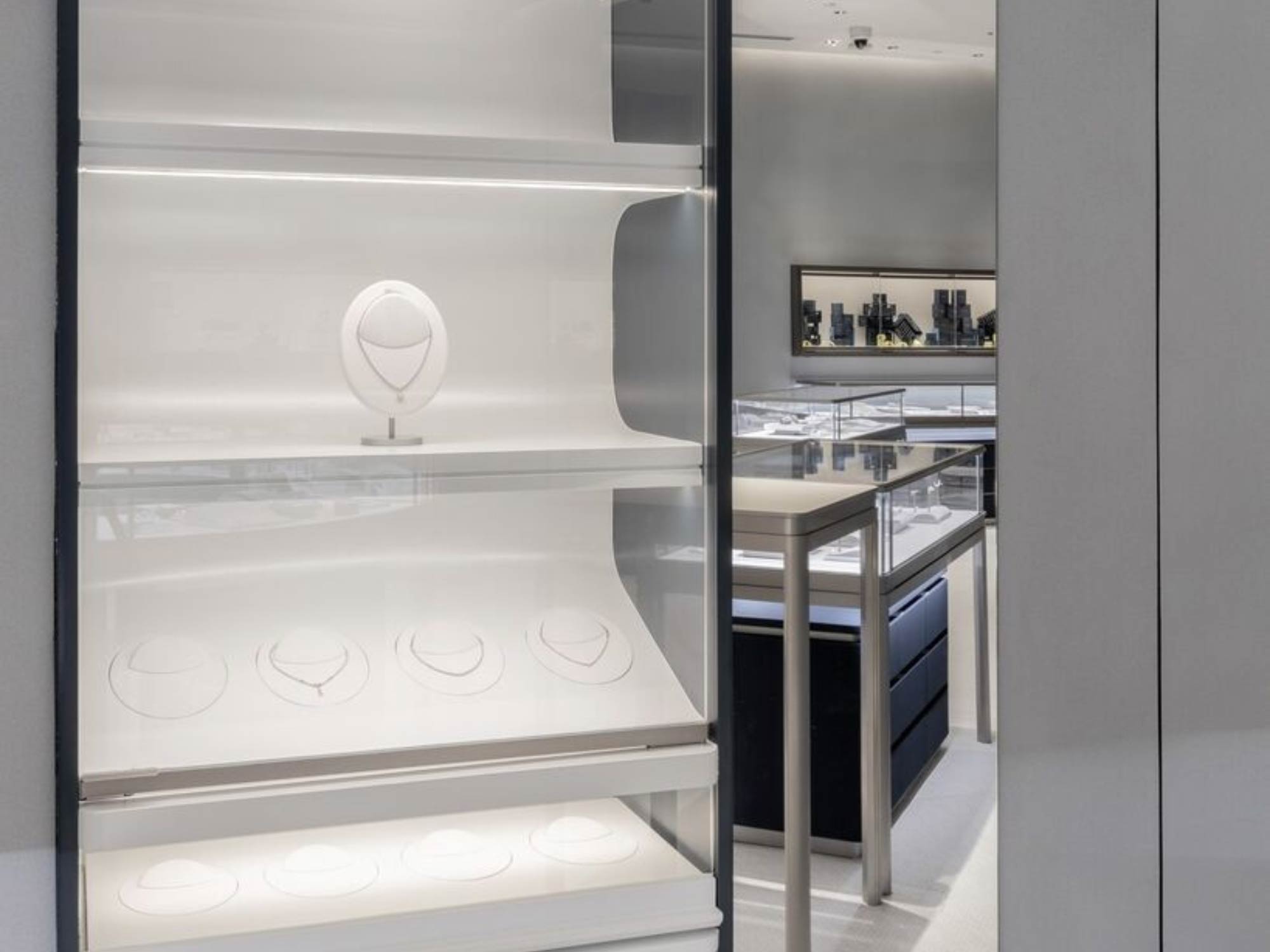 Hệ thống chiếu sáng được thiết kế để tập trung tối đa vào các sản phẩm, giúp tăng cường độ lấp lánh của kim cương và đá quý, đồng thời tạo cảm giác như mỗi món trang sức là một “vật thể được trưng bày đặc biệt”.