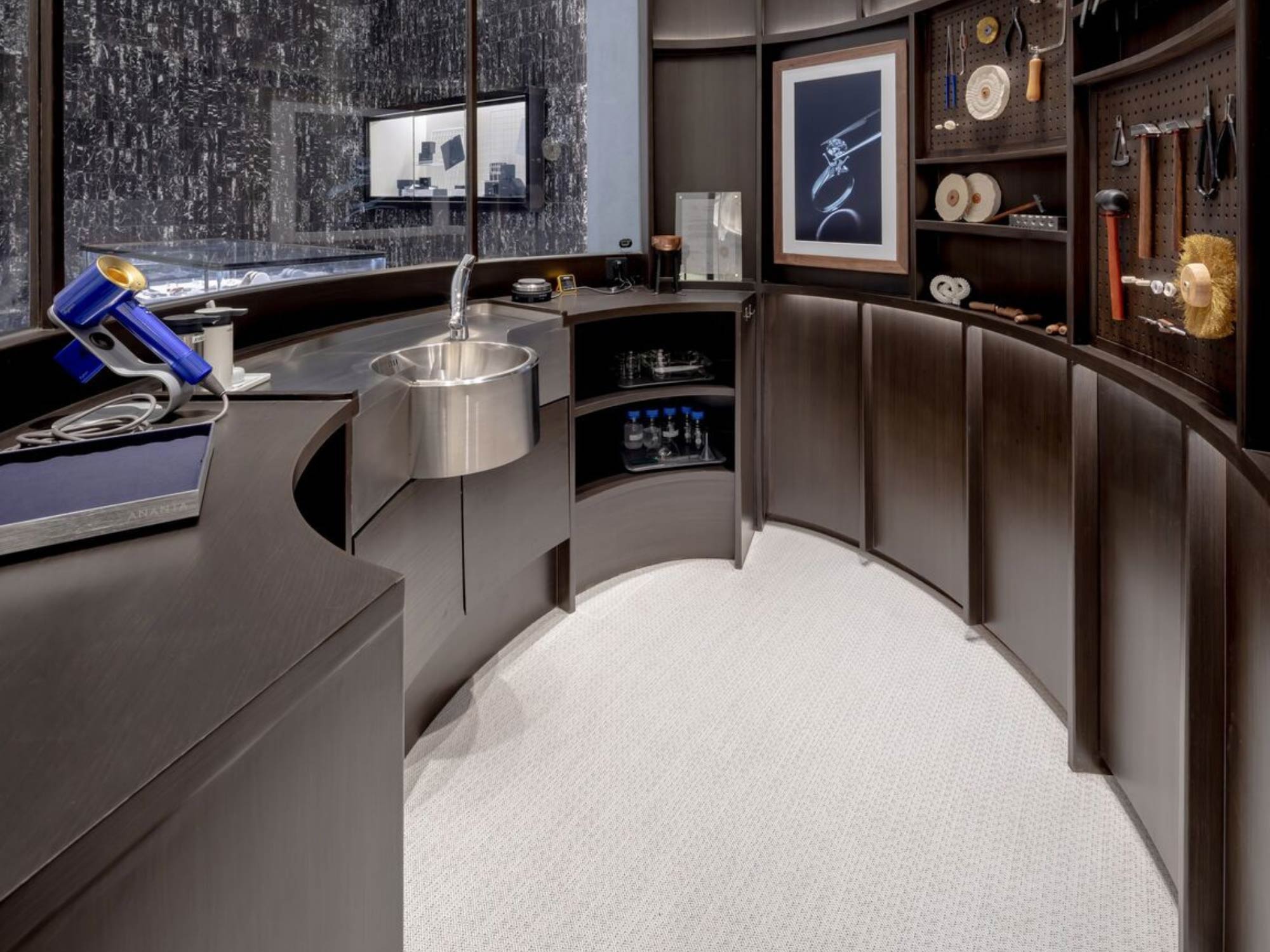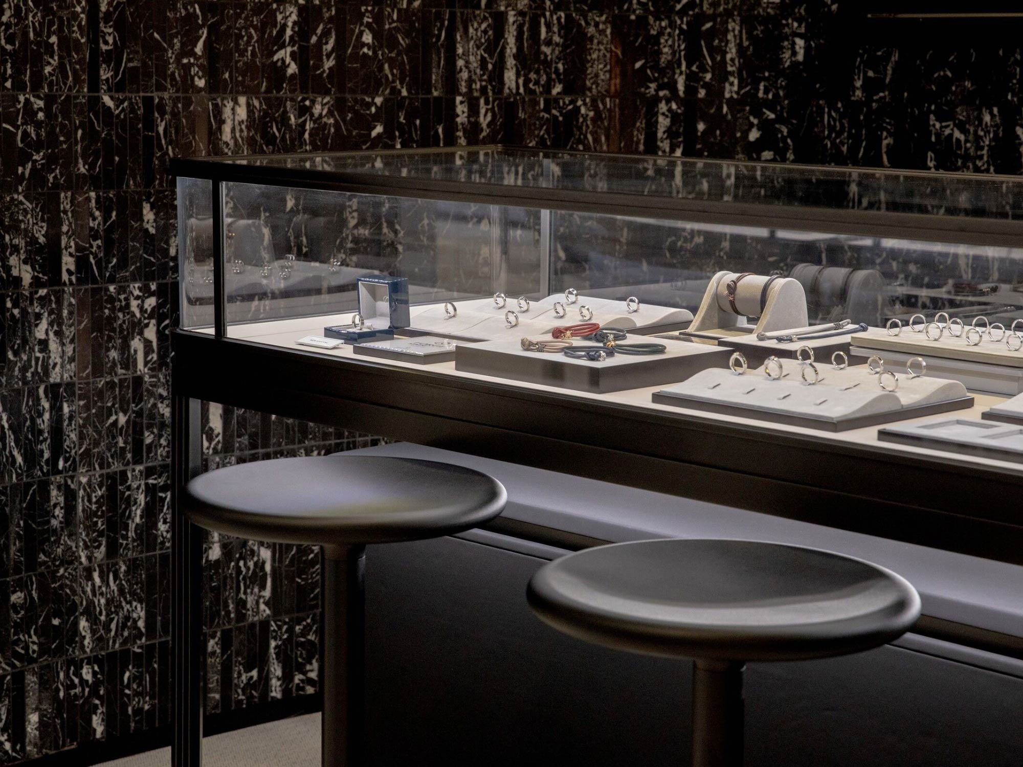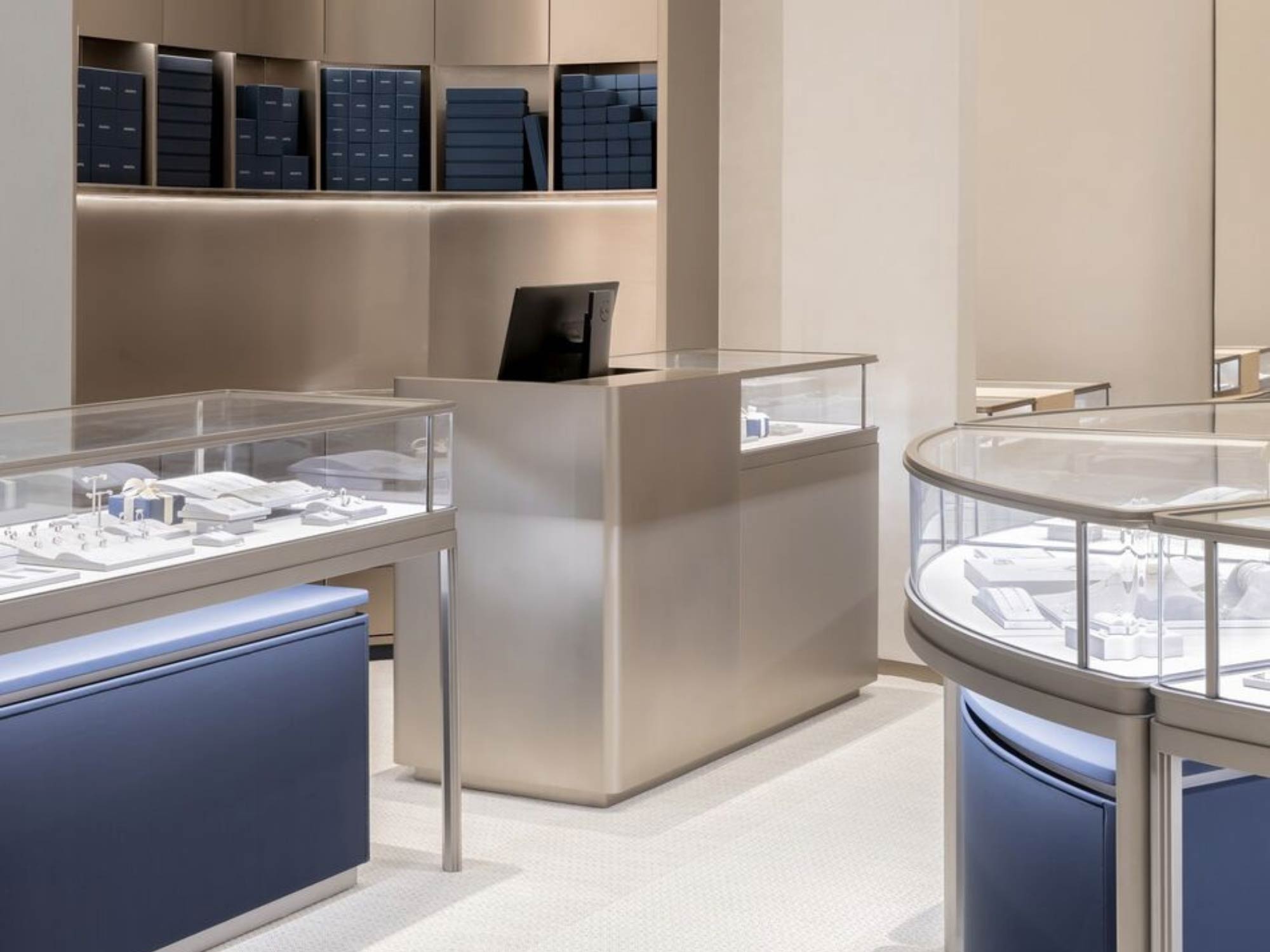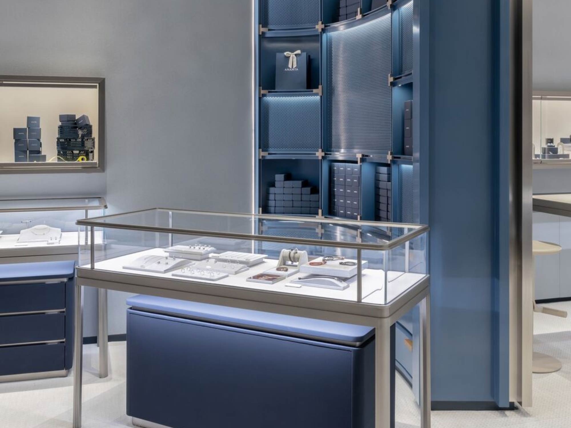 Một trong những chiến lược quan trọng của thiết kế là làm giảm cảm giác “xa xỉ lạnh lùng” thường thấy trong các cửa hàng trang sức truyền thống.