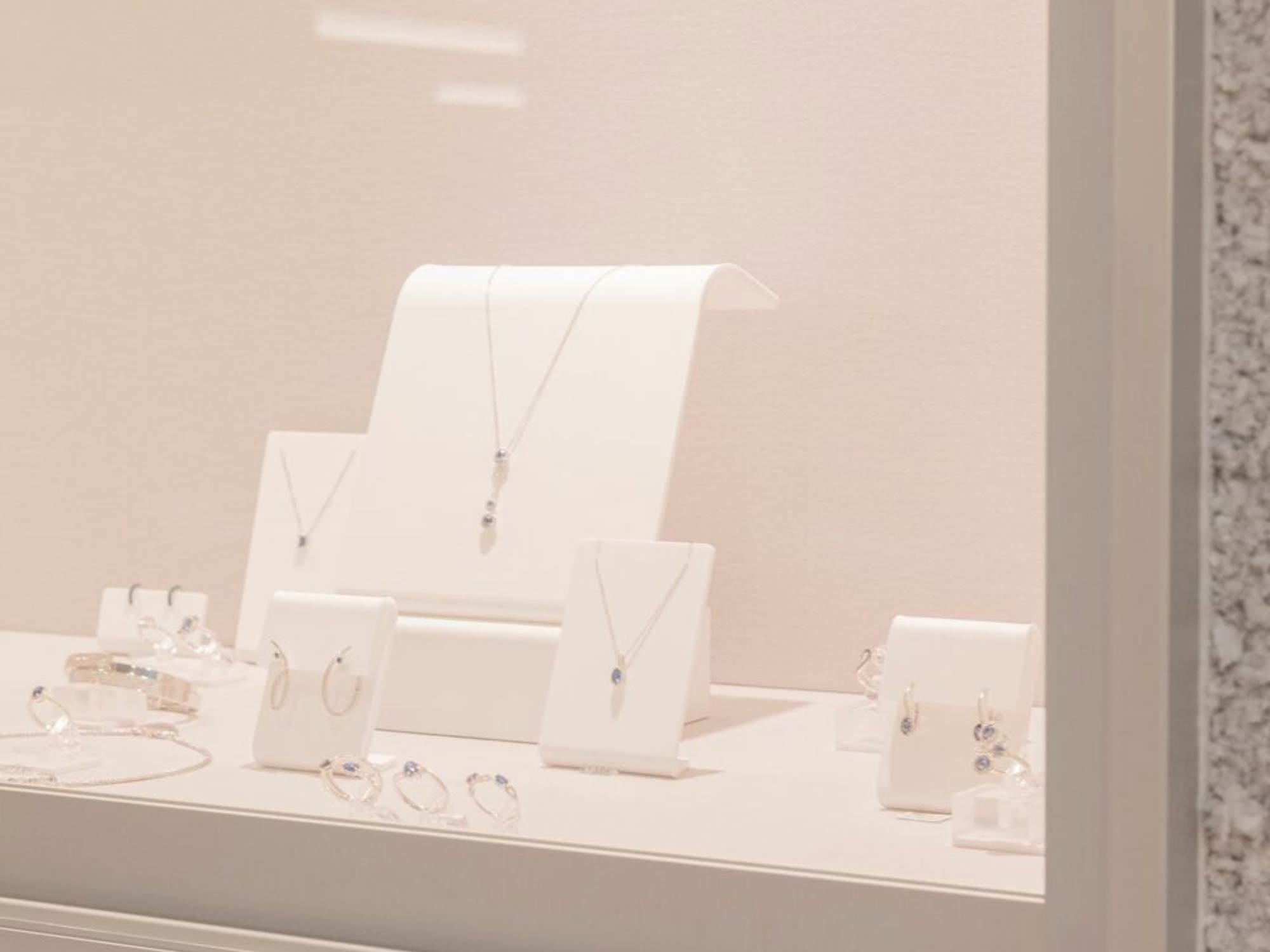 Đồng thời, gương cũng đóng vai trò phân chia nhẹ các khu vực thử trang sức, tạo nên những “không gian trong không gian” mà không làm gián đoạn tổng thể.