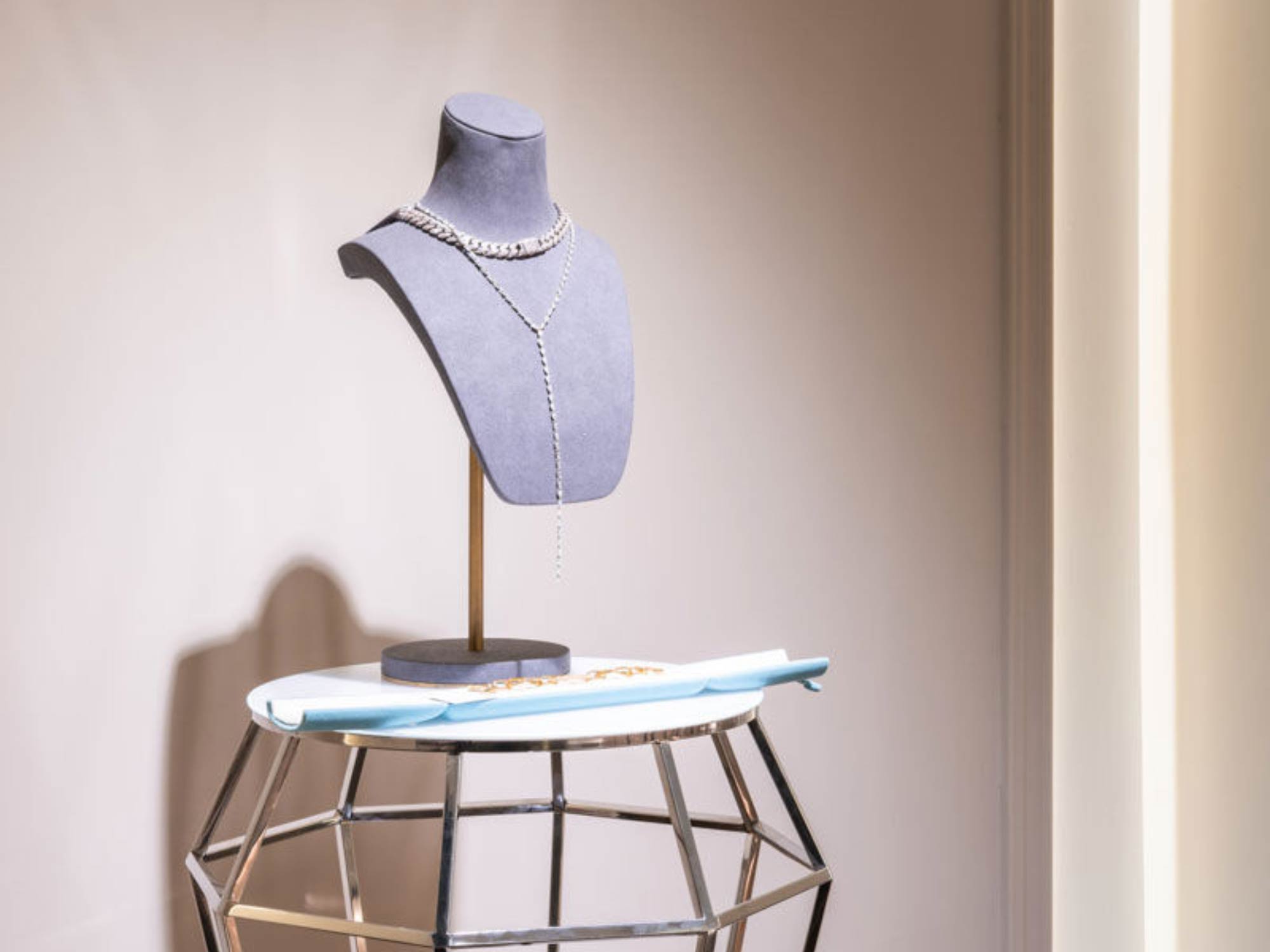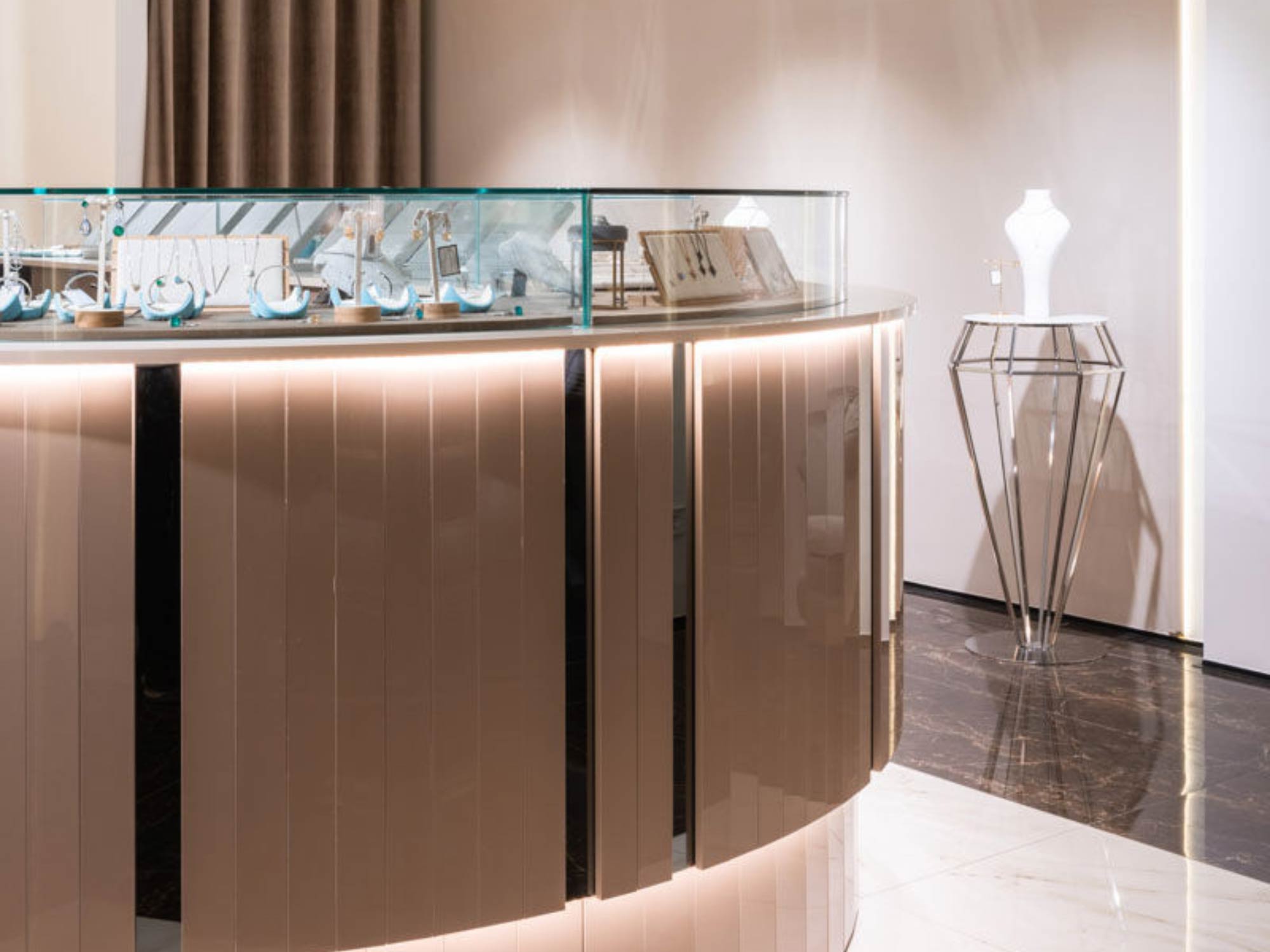 Trang sức tự thân đã mang tính biểu tượng của sự xa xỉ, vì vậy thiết kế lựa chọn hướng đi “giảm bớt để làm nổi bật”. Không gian được tiết chế tối đa về chi tiết, nhằm giữ lại cảm giác thanh lịch và cao cấp mà không tạo ra sự cạnh tranh thị giác với sản phẩm.