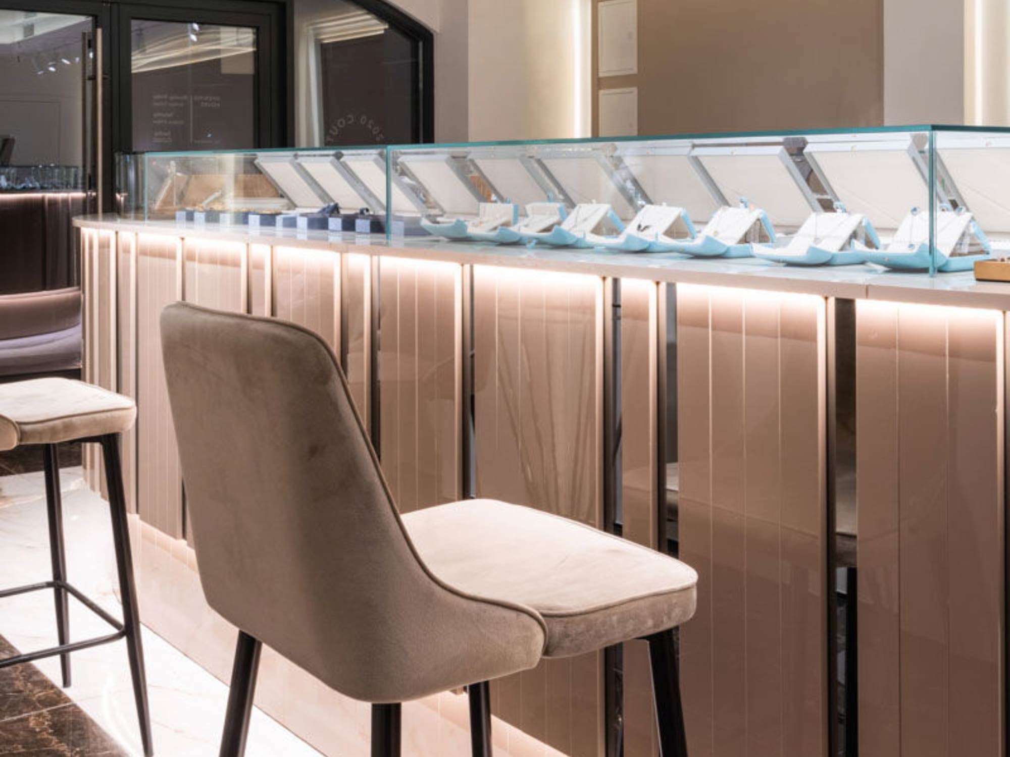 Trái tim của không gian là một khối đảo trung tâm được phát triển theo concept “jewelry bar” – sự kết hợp giữa quầy bar và tủ trưng bày trang sức.