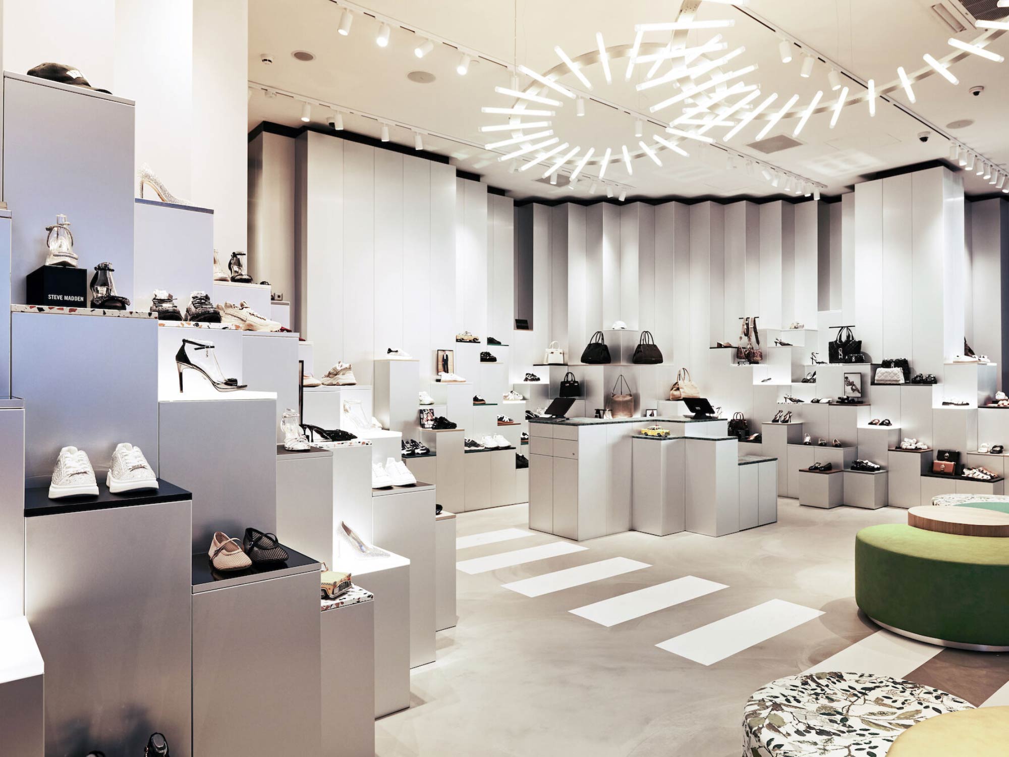 Trong bối cảnh ngành thời trang chuyển dịch mạnh mẽ sang trải nghiệm khách hàng, thiết kế nội thất cửa hàng không còn dừng lại ở việc trưng bày sản phẩm mà trở thành một công cụ kể chuyện thương hiệu. Shop Thời Trang Steve Madden do BLUEWOOD triển khai thể hiện rõ tư duy này, khi không gian được định hình như một “hệ sinh thái trải nghiệm” thay vì một mặt bằng bán lẻ truyền thống. Ở đó, khách hàng không chỉ mua sắm mà còn tham gia vào một hành trình thị giác – nơi kiến trúc, ánh sáng và vật liệu cùng nhau tạo nên cảm xúc.