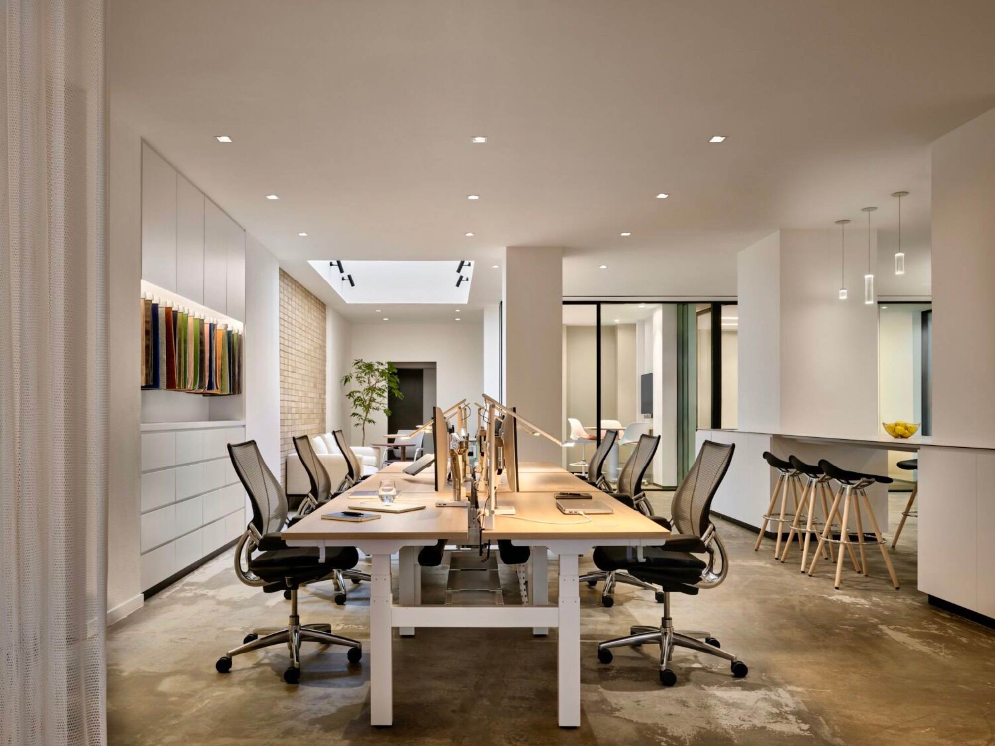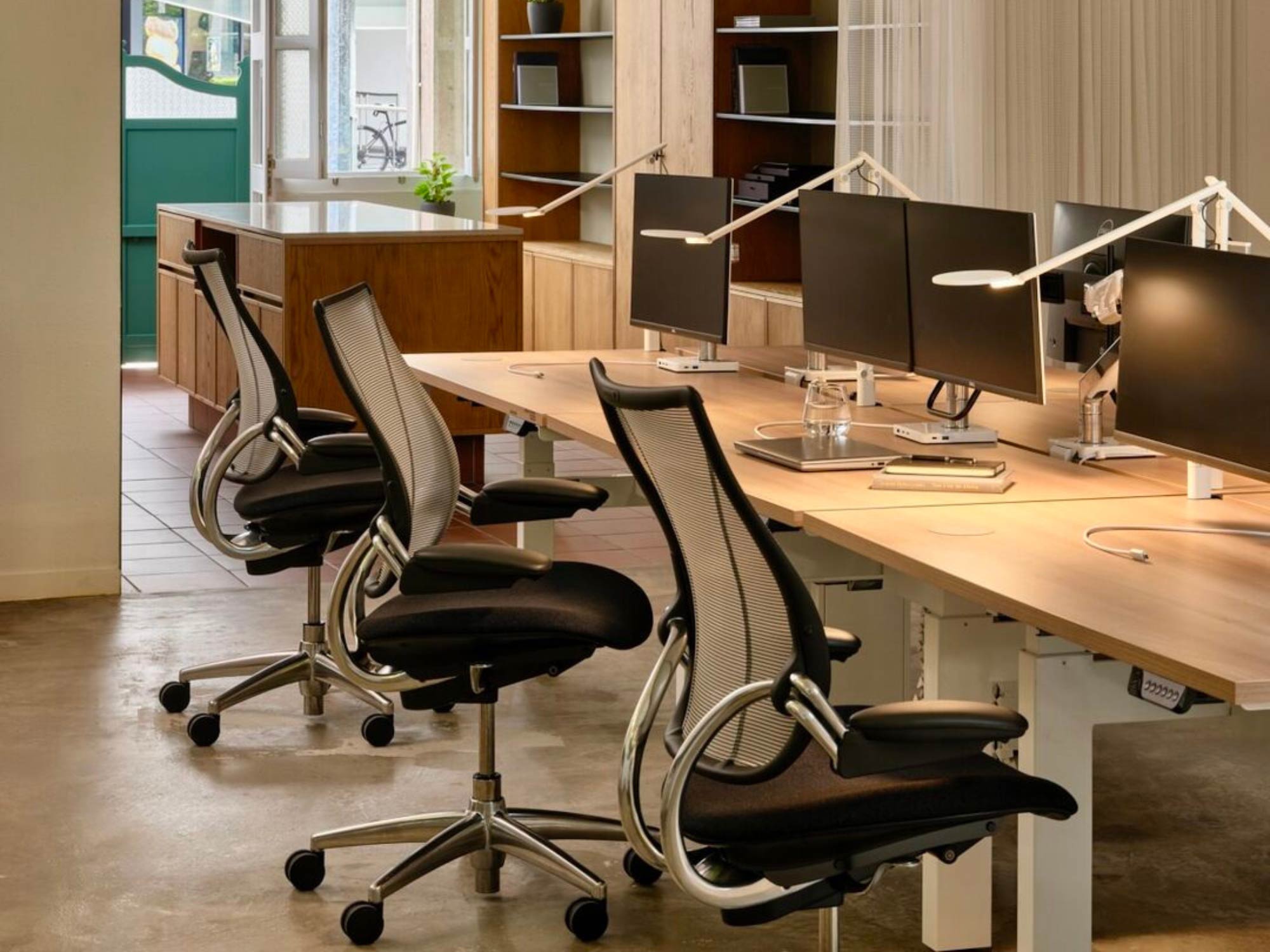 Dưới bàn tay của BLUEWOOD, bảng vật liệu được tiết chế tối đa để nhường “sân khấu” cho các siêu phẩm ghế văn phòng hàng đầu thế giới. Đây là sự tính toán kỹ lưỡng về mặt thị giác: