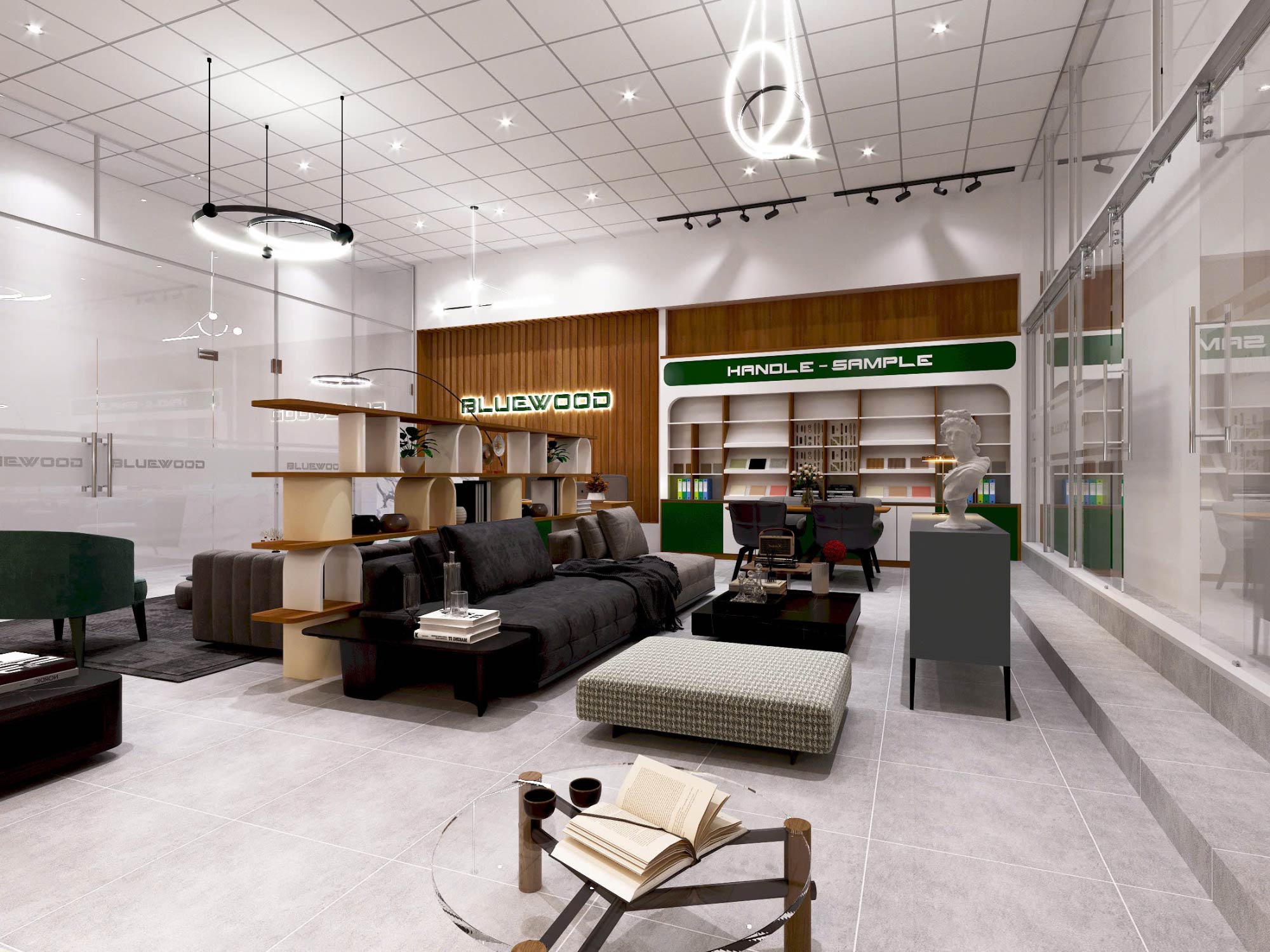Điểm đáng giá nhất của showroom BLUEWOOD nằm ở việc biến không gian trưng bày thành một trải nghiệm thực tế. Khách hàng không chỉ “xem” mà còn “cảm” được cách một công trình sẽ vận hành sau khi hoàn thiện.