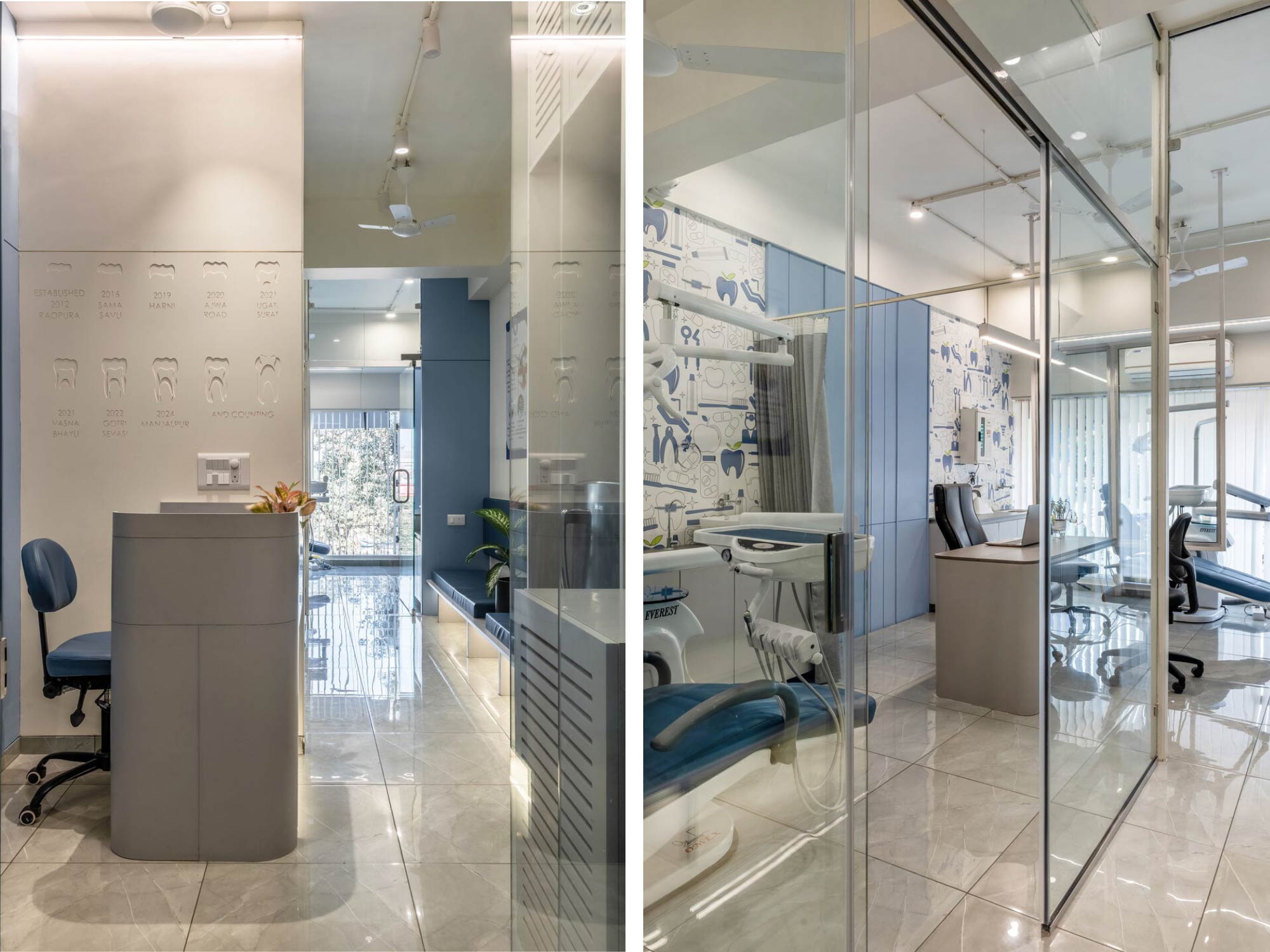 Trong bức tranh chung của các cơ sở y tế đô thị, phòng khám nha khoa đang dần chuyển mình từ mô hình thuần công năng sang mô hình dịch vụ trải nghiệm. Áp lực tâm lý của bệnh nhân khi tiếp cận điều trị nha khoa đòi hỏi không gian phải đóng vai trò hỗ trợ cảm xúc, thay vì chỉ đáp ứng tiêu chuẩn vô trùng. Dự án do BLUEWOOD triển khai thể hiện rõ xu hướng này, khi kiến trúc nội thất được xem như một phần của quy trình chăm sóc, góp phần làm dịu cảm giác lo lắng và nâng cao sự tin cậy ngay từ bước tiếp cận đầu tiên.