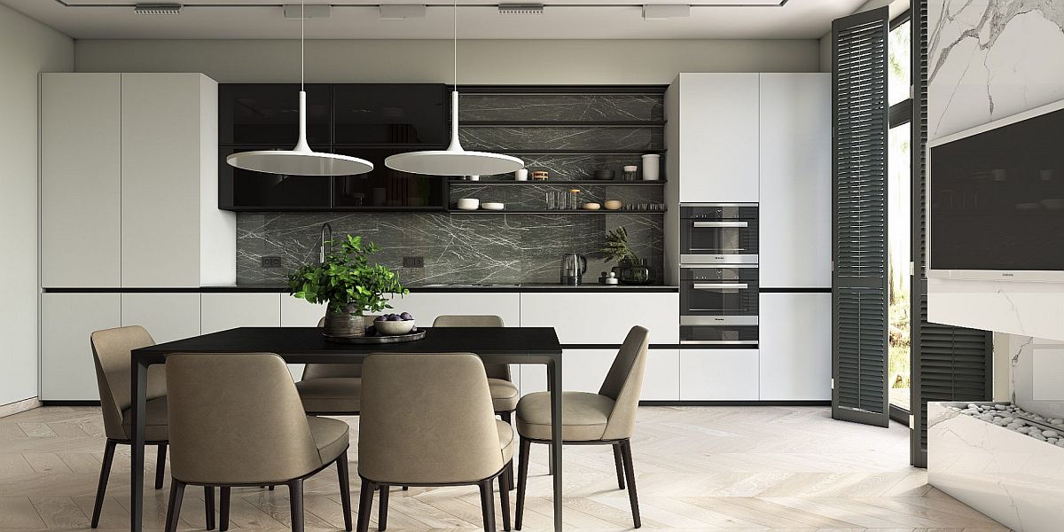 Bên cạnh đó, xu hướng thiết kế không gian mở giữa phòng khách, phòng bếp và khu vực bàn ăn ngày càng phổ biến. Việc loại bỏ các vách ngăn không cần thiết giúp không gian trở nên rộng rãi, thông thoáng và tạo cảm giác kết nối giữa các khu vực sinh hoạt trong gia đình.