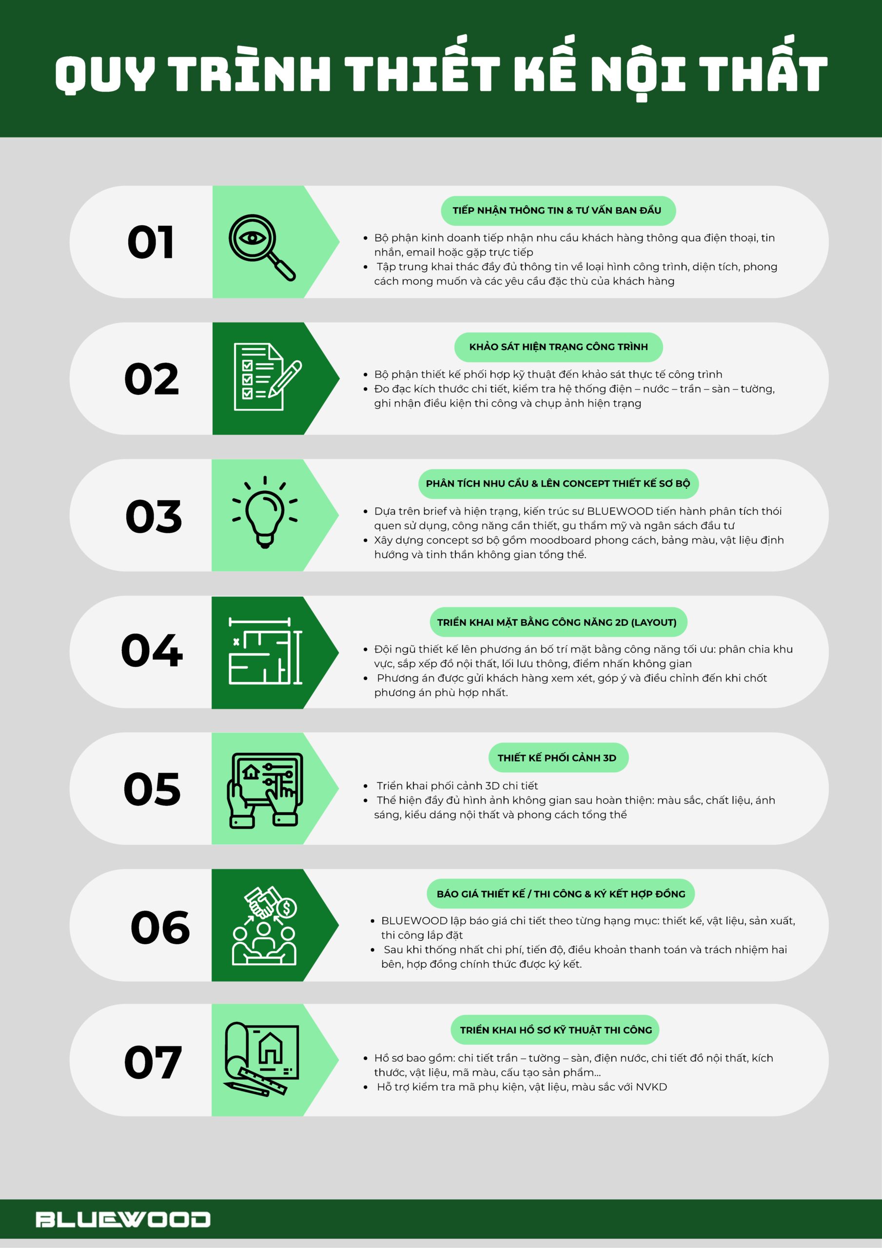 Bluewood chuyên sản xuất thiết kế, và phân phối các sản phẩm nội thất cho không gian sống và làm việc. Các sản phẩm nội thất thường bao gồm tủ bếp, tủ áo, bàn, ghế, giường, tủ, kệ, và nhiều đồ dùng trang trí khác.