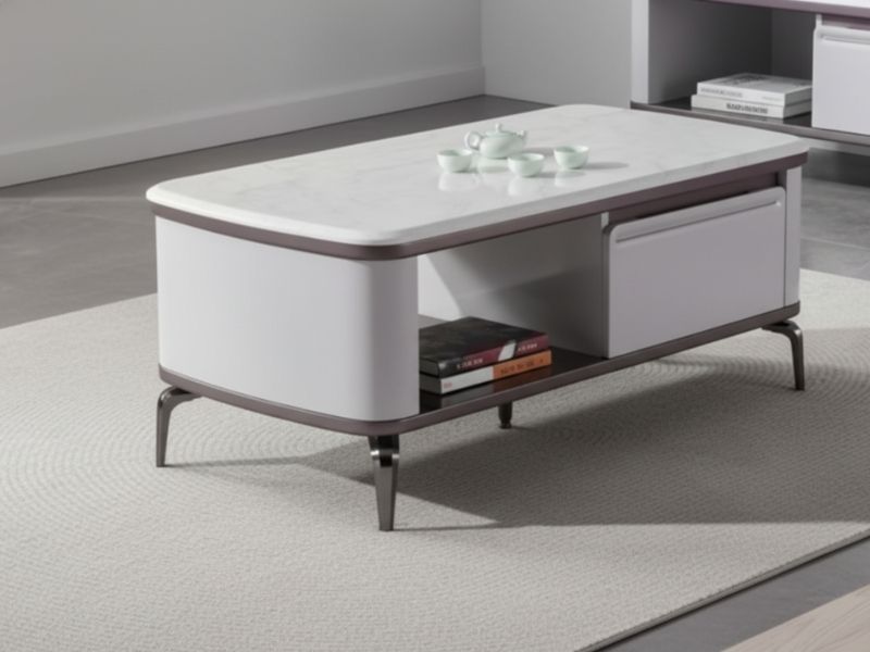 - Kệ mở phía dưới: Cung cấp thêm không gian lưu trữ hoặc trưng bày sách, đồ trang trí, tạo điểm nhấn cho bàn trà và tăng tính tiện dụng.