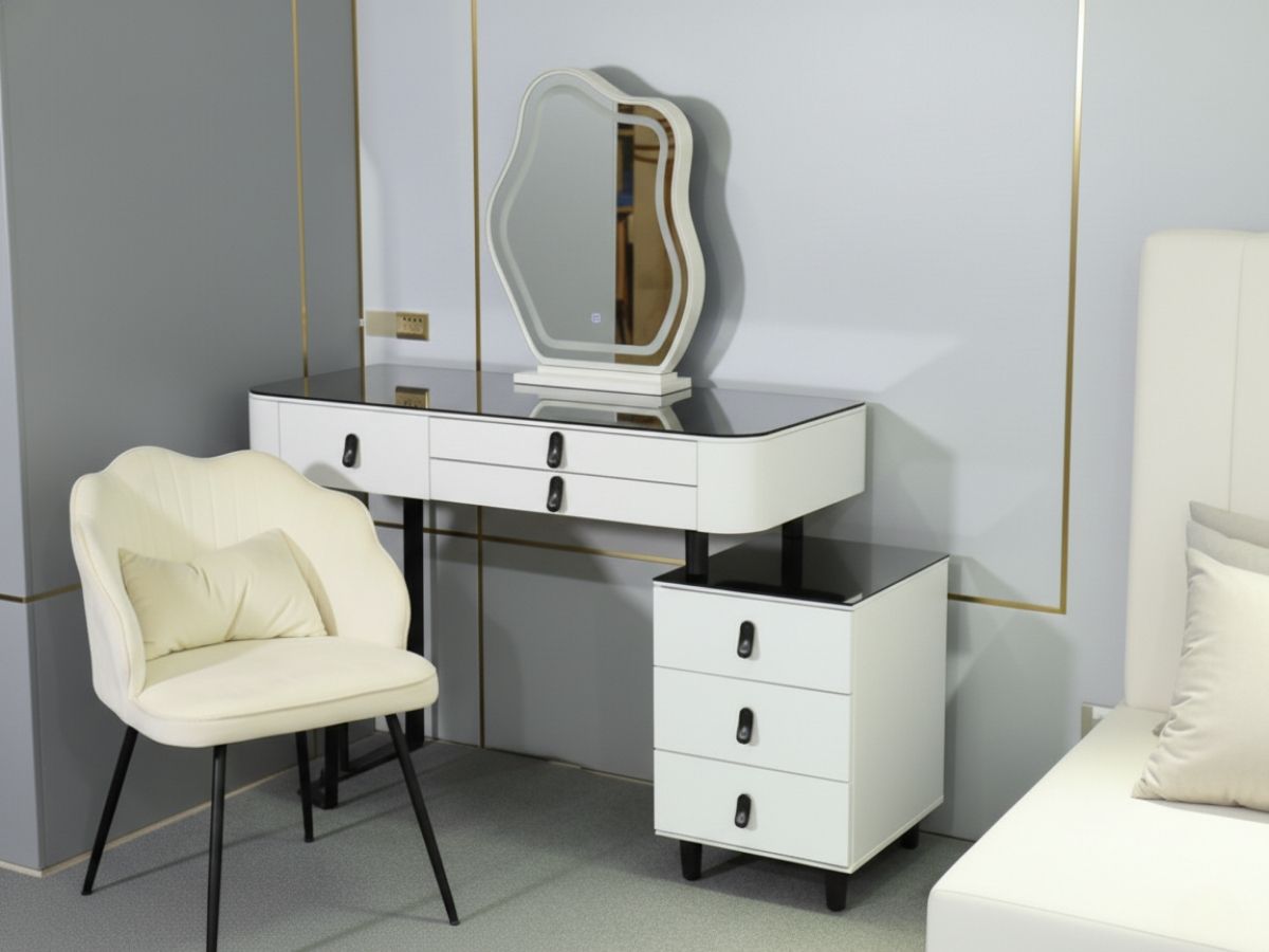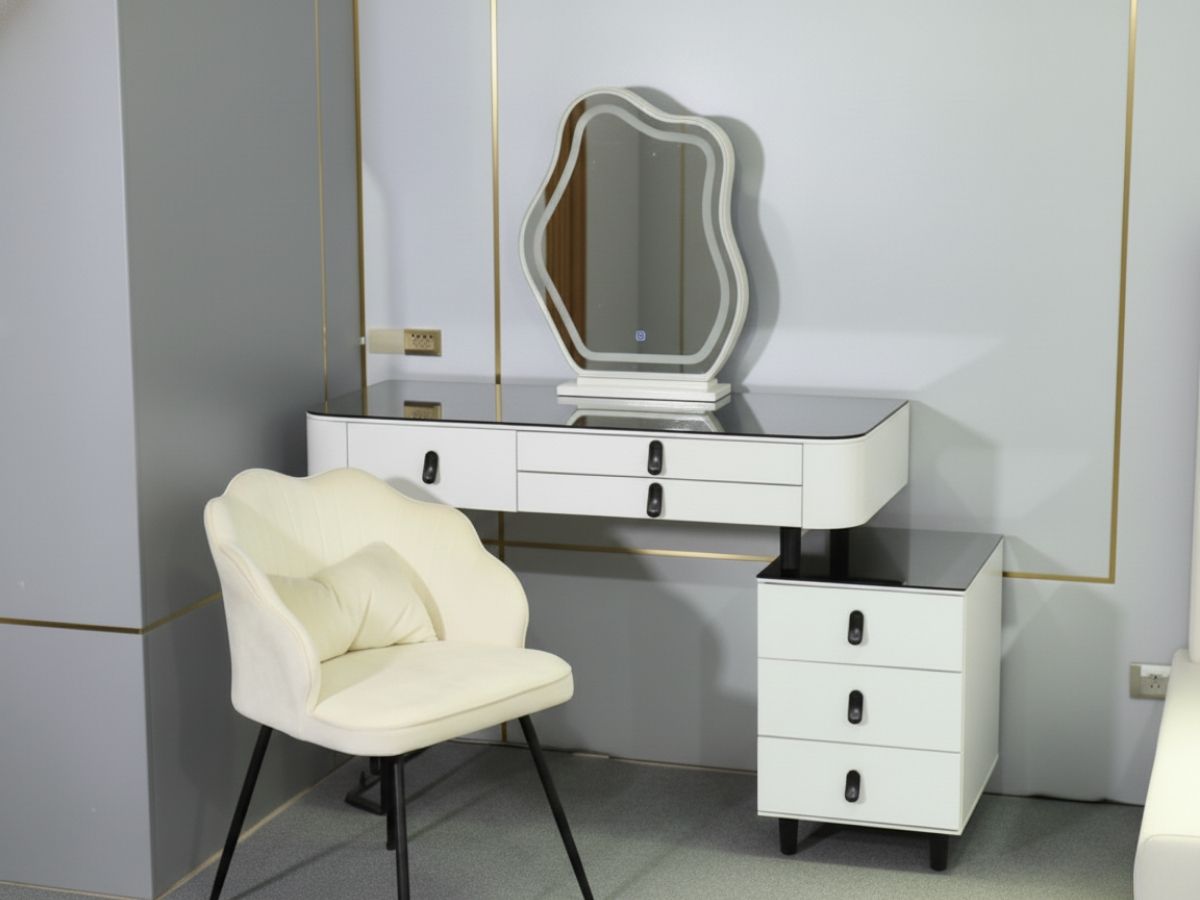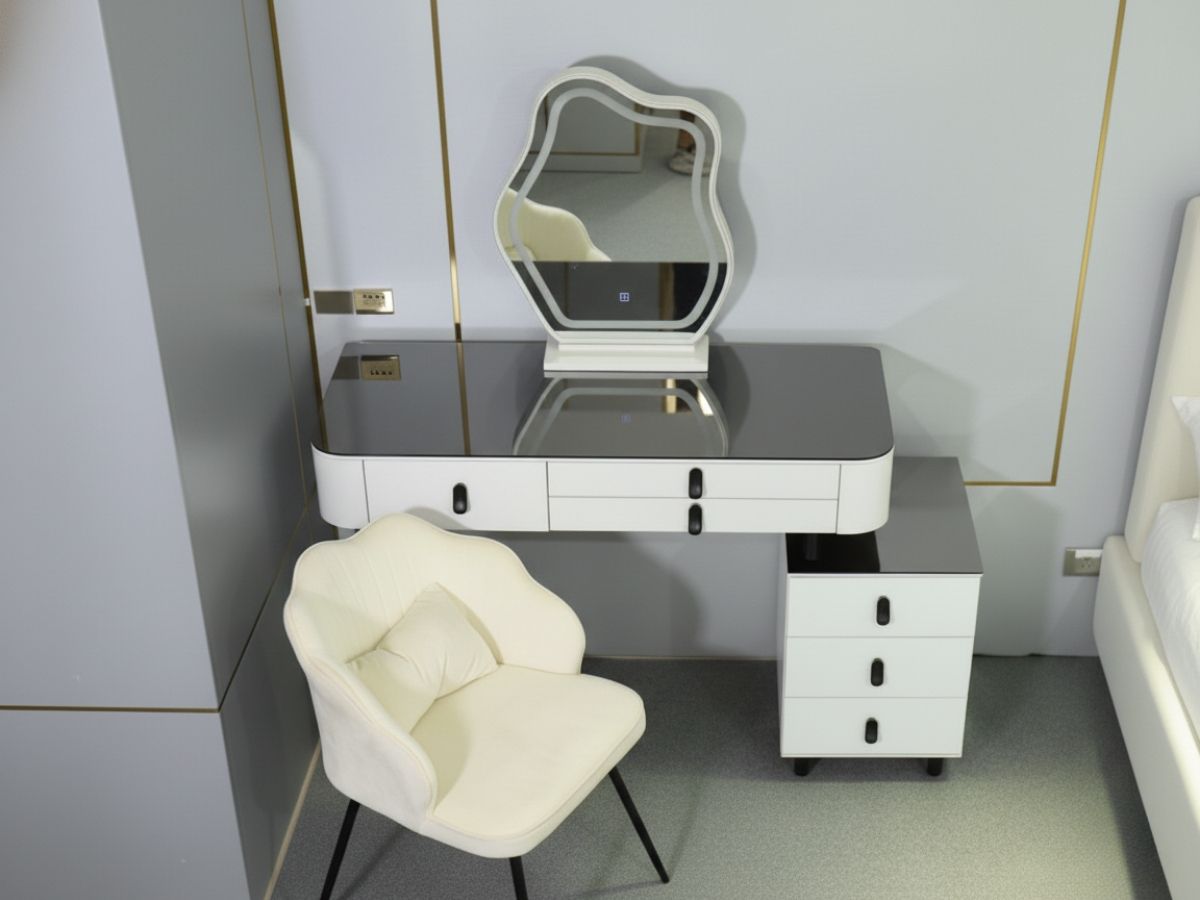 - Lưu trữ tối ưu & đa năng: Ngăn kéo rộng rãi, thiết kế khoa học, vừa là bàn trang điểm vừa là trung tâm giải trí mini.