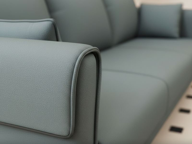 Đệm bọc vải màu xám xanh: Chất liệu mềm mại, bền bỉ, dễ vệ sinh và tạo cảm giác thoải mái khi sử dụng.