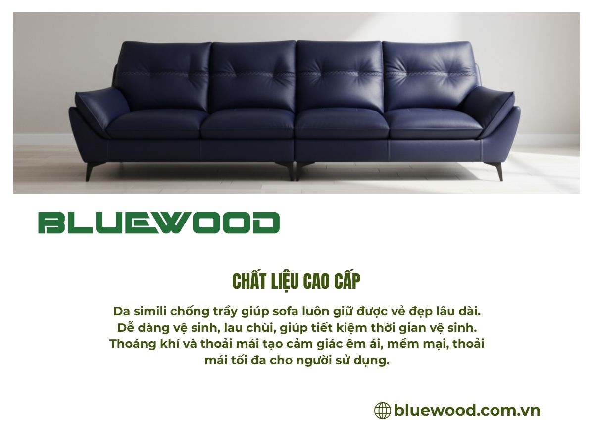 - Chất liệu da simili chống trầy cao cấp, bền đẹp, dễ vệ sinh, kết hợp khung chắc chắn và đệm mút đàn hồi tốt.