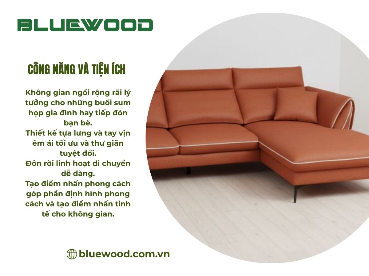 - Kiểu dáng góc L hiện đại: Tận dụng tối đa không gian, tạo điểm nhấn ấn tượng cho căn phòng, đồng thời mang lại nhiều chỗ ngồi thoải mái.
