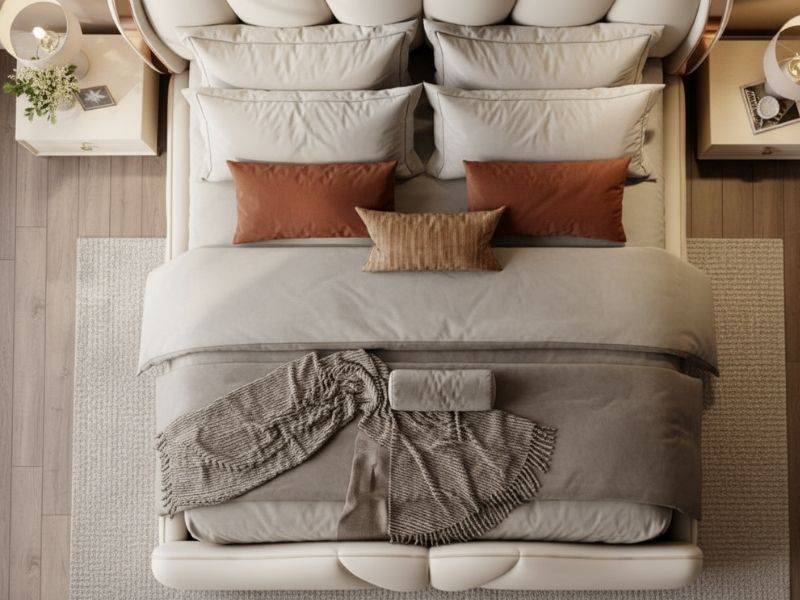 - Dễ dàng kết hợp nội thất: Kiểu dáng và màu sắc trung tính giúp giường dễ dàng phối hợp với các đồ nội thất khác như tủ quần áo, bàn trang điểm, tab đầu giường.