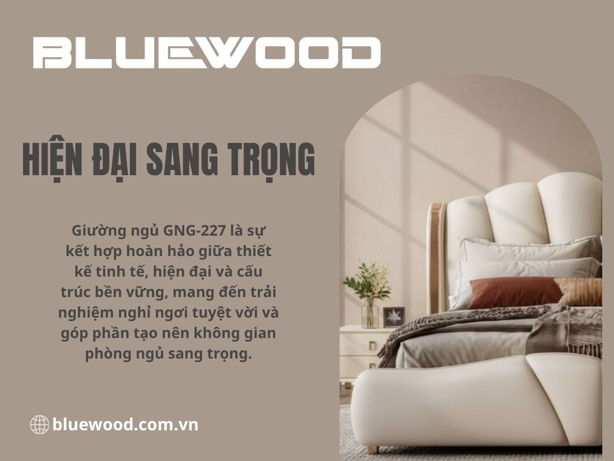 - Tăng tính thẩm mỹ cho phòng ngủ: Với thiết kế sang trọng, giường GNG-227 là điểm nhấn giúp nâng tầm đẳng cấp cho không gian sống.
