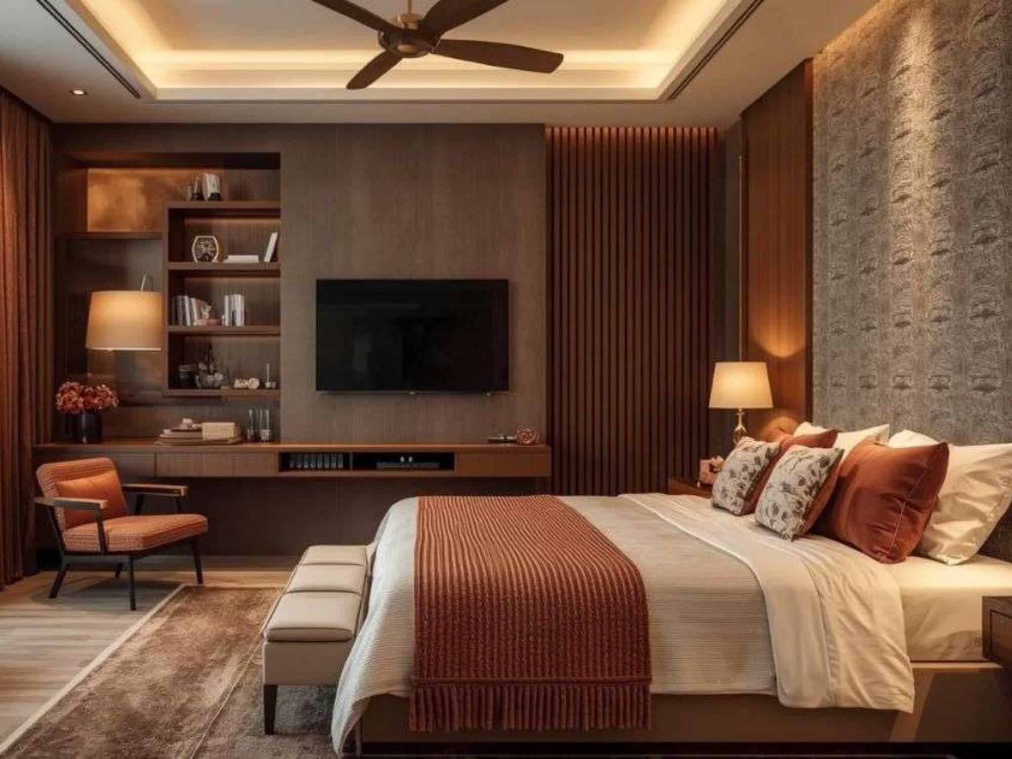 Các vật liệu mềm như vải, da được sử dụng cho đầu giường hoặc ghế thư giãn nhằm tăng cảm giác êm ái. Kính và kim loại giúp tạo sự hiện đại và phản xạ ánh sáng tốt hơn. Quan trọng hơn, toàn bộ vật liệu đều được thi công theo quy chuẩn kỹ thuật chặt chẽ, đảm bảo độ bền lâu dài và hạn chế các vấn đề phát sinh trong quá trình sử dụng.