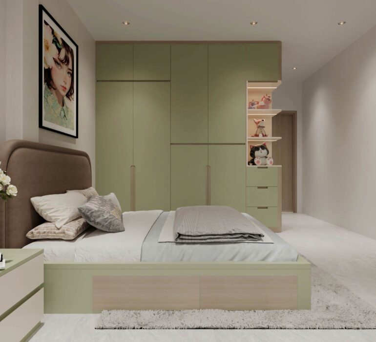 Với những gia đình muốn tối ưu sử dụng lâu dài, các giải pháp giường bục, giường kéo phụ, giường kết hợp bàn học hoặc hệ lưu trữ thông minh cũng rất phù hợp. Đây là cách giúp phòng ngủ luôn gọn gàng và thích ứng tốt với từng giai đoạn phát triển của bé.