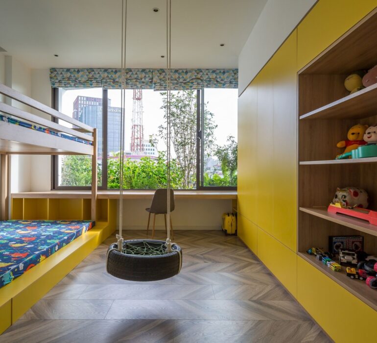 BLUEWOOD luôn ưu tiên khai thác tối đa ánh sáng tự nhiên để giúp căn phòng thông thoáng, dễ chịu và gần gũi hơn. Tuy nhiên, ánh sáng tự nhiên cũng cần được kiểm soát bằng rèm hai lớp hoặc giải pháp che nắng phù hợp để đảm bảo sự riêng tư và chất lượng giấc ngủ.